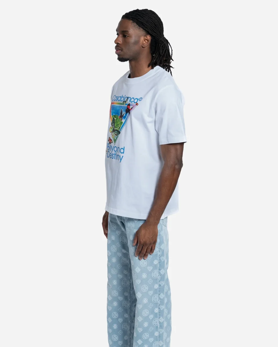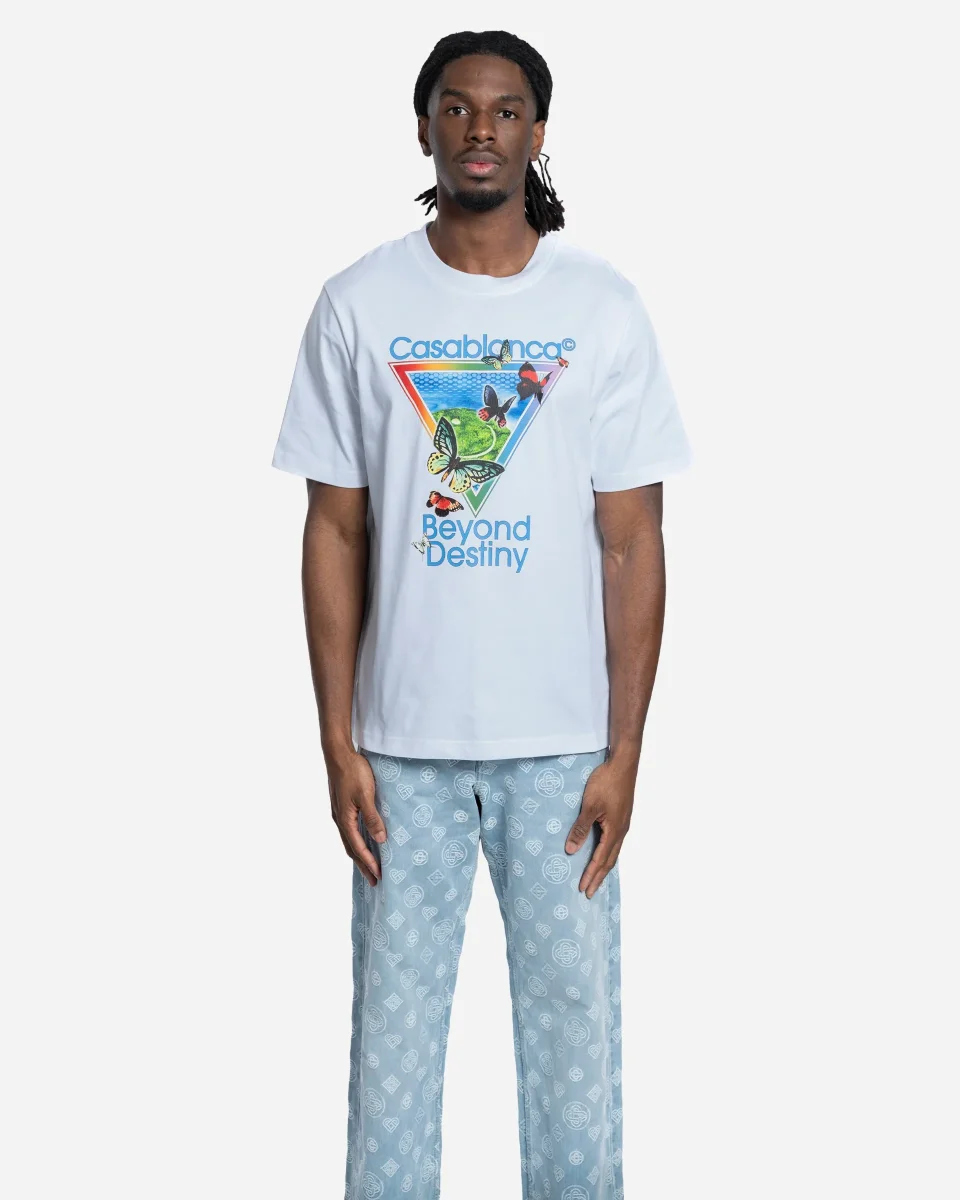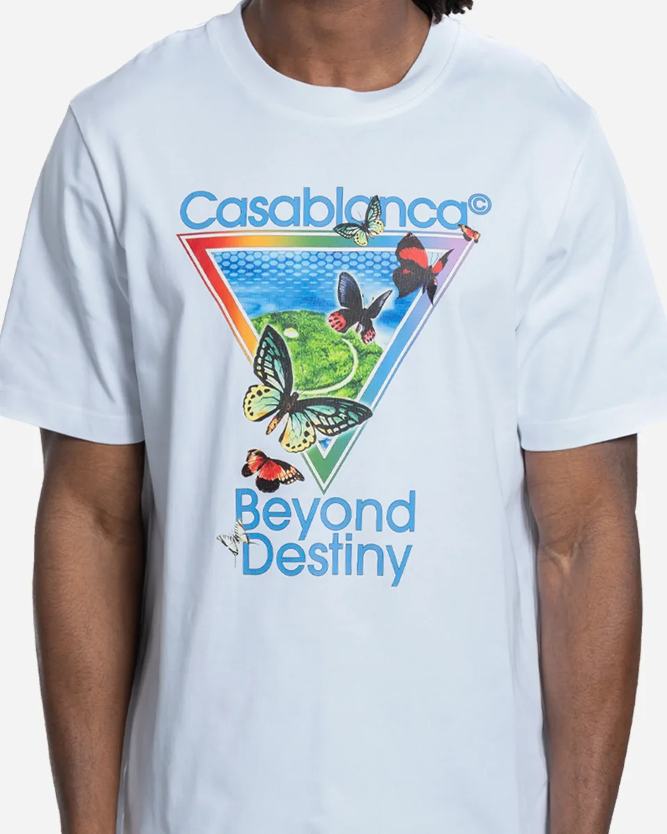 T-shirt, Casablanca, Blanc, Coton biologique, Tennis Club, Beyond Destiny, Papillons, Art numérique, Made in Portugal, Relaxed fit