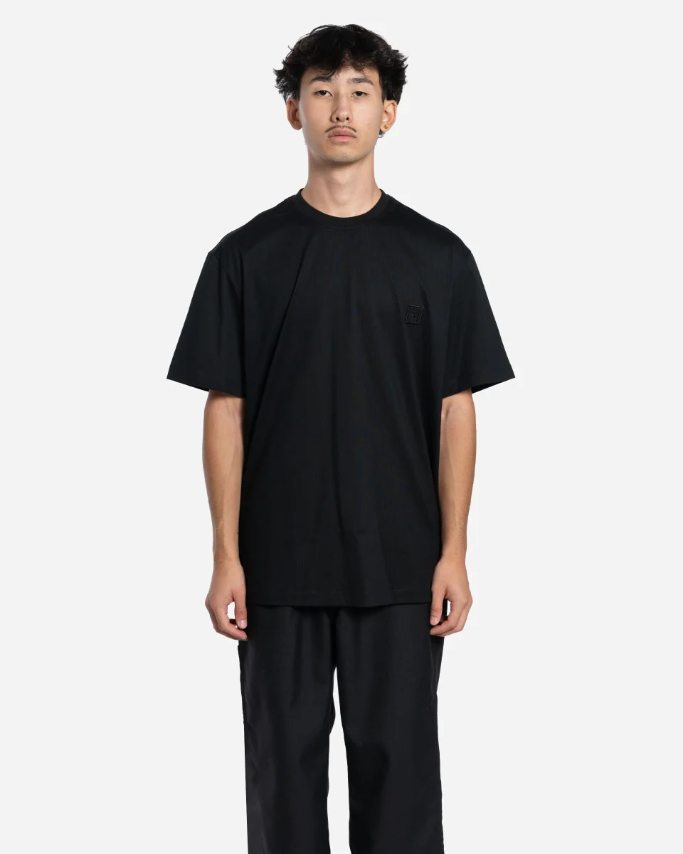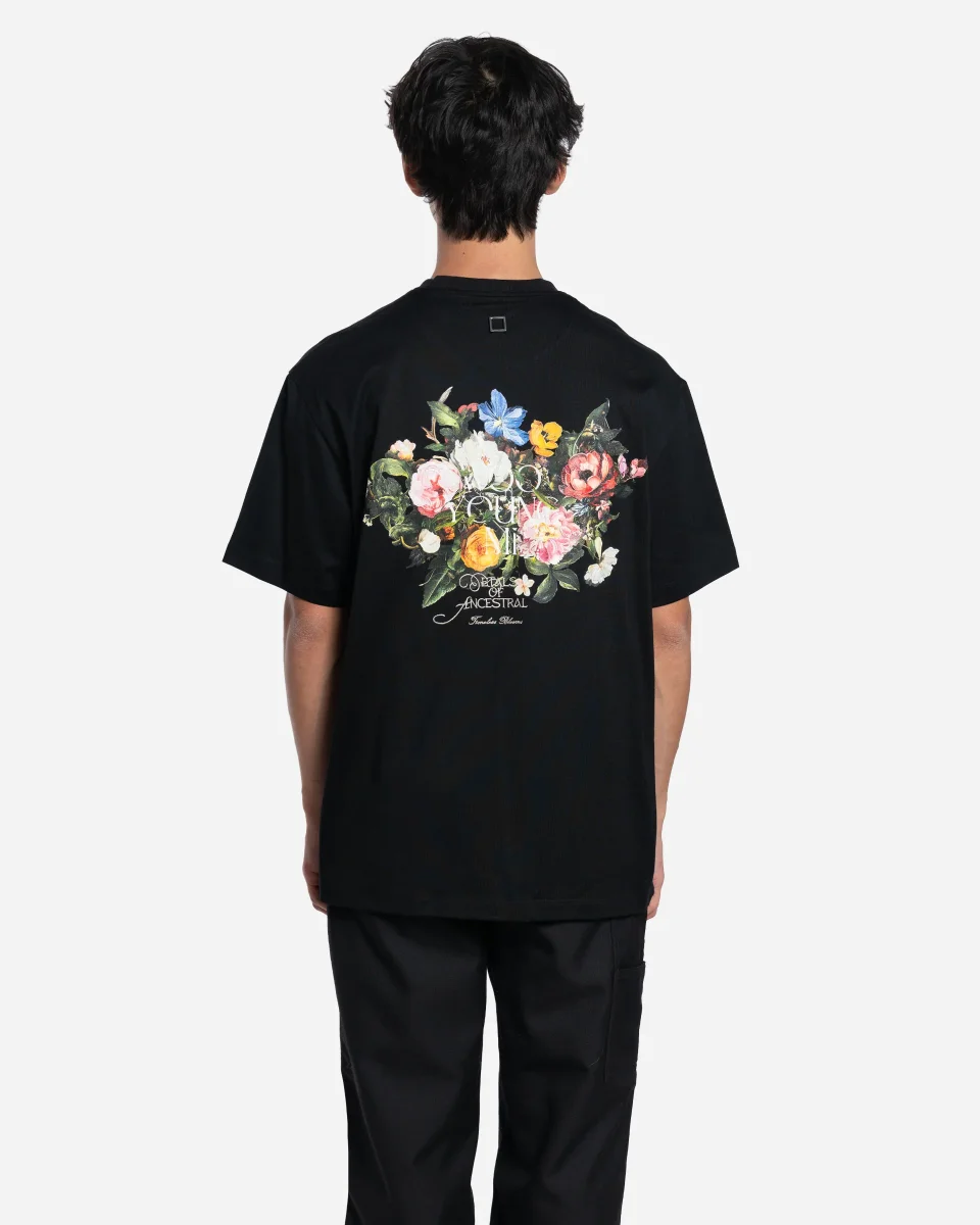 Wooyoungmi, t-shirt imprimé, motif floral, t-shirt noir, design artistique, streetwear coréen, patch logo