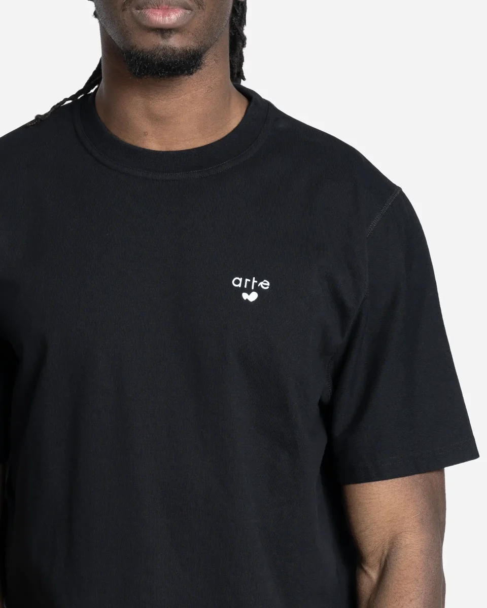 t-shirt, noir, Arte Antwerp, logo cœur, coton, SS26, streetwear, Anvers, Portugal, SS26-125T.