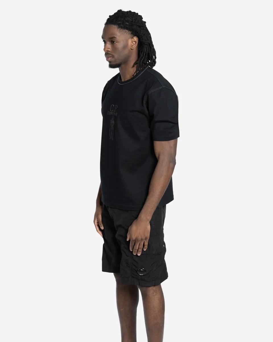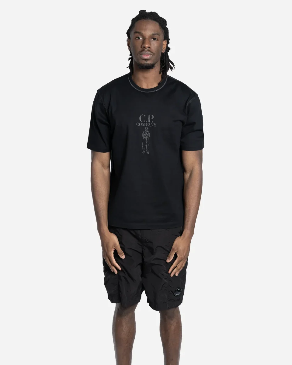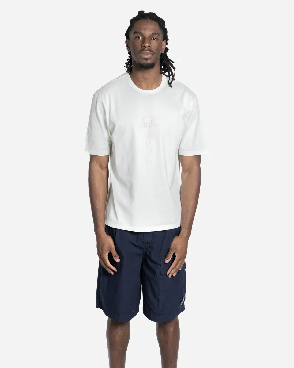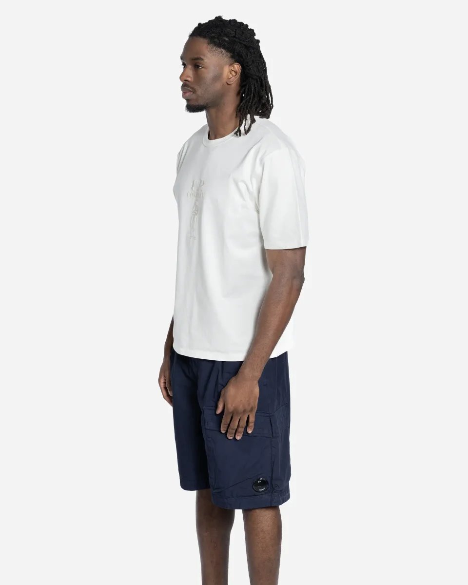Le t-shirt à manches courtes de chez C.P. Company se distingue par l’utilisation d’un jersey de coton mercerisé 30/2 torsadé, une technique de finition qui confère au textile un aspect légèrement brillant et une meilleure tenue dans le temps. Ce modèle met en avant l’héritage de la marque avec le motif « British Sailor » et un logo discrètement brodé sur la poitrine. Fabriqué en Italie, il propose une coupe classique aux finitions soignées, notamment un col rond côtelé. Ce haut allie la simplicité d’un basique premium à la qualité de fabrication rigoureuse de la maison italienne, idéal pour un look quotidien raffiné.