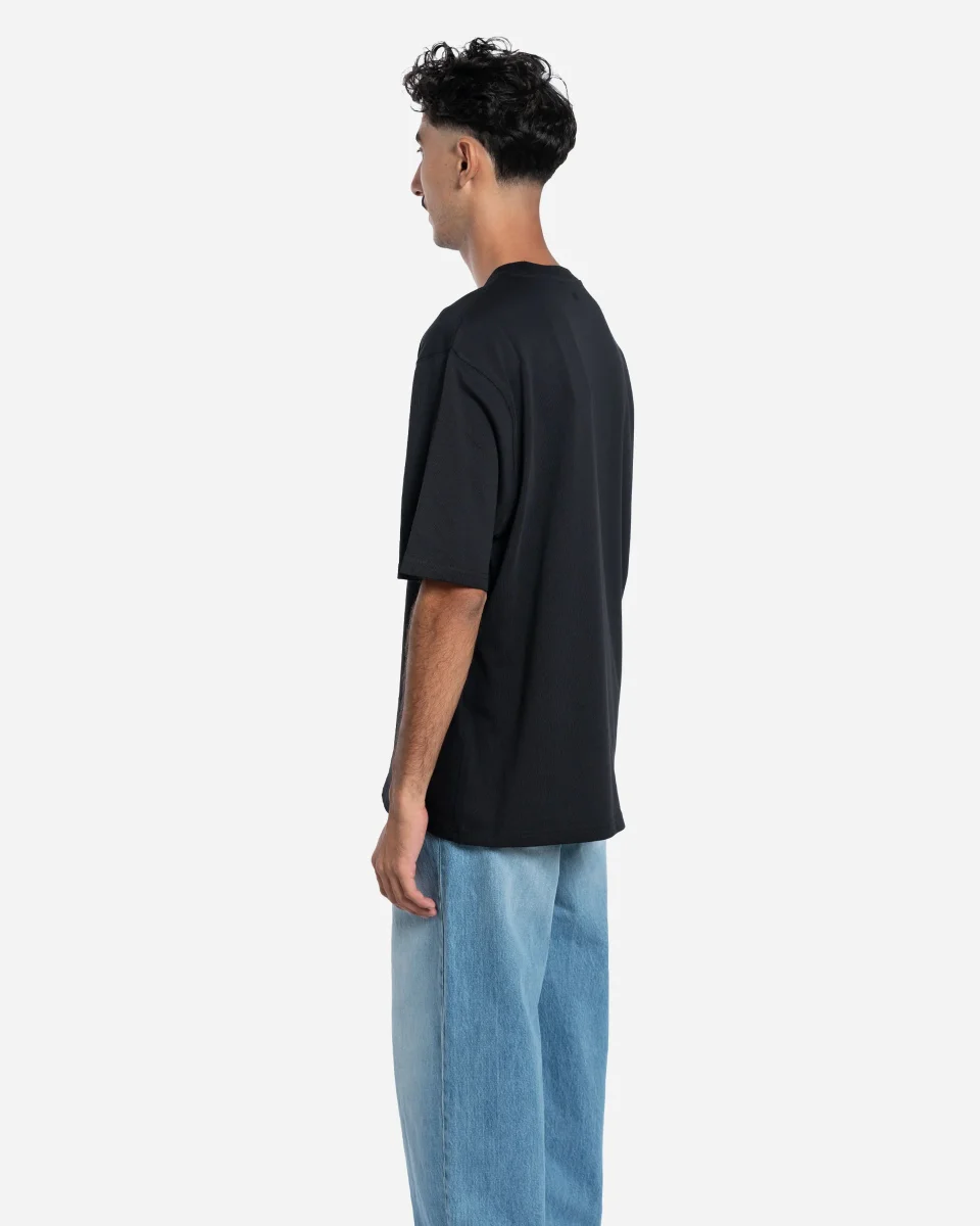 T-shirt noir unisexe AMI Paris à coupe boxy, confectionné en jersey de coton épais. Orné du patch bouclette 3D « Ami de Cœur » contrasté sur la poitrine et d’une broderie « ami » ton sur ton sous l’encolure au dos. Un basique premium au style minimaliste et reconnaissable, fabriqué au Portugal.