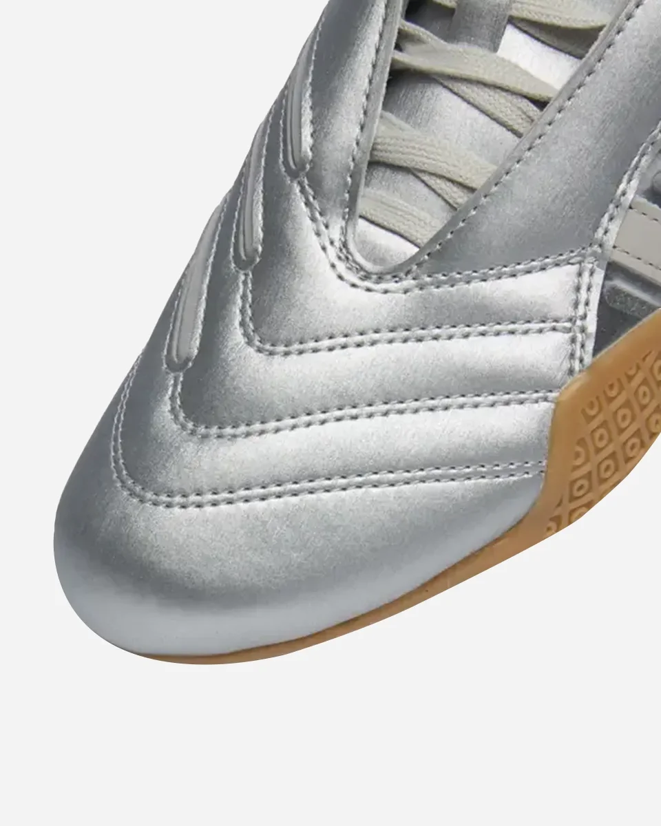 Baskets, Adidas, Taekwondo Mei Elite, cuir argenté, Silver Metallic, années 2000, semelle gomme, style rétro, minimaliste, mode urbaine