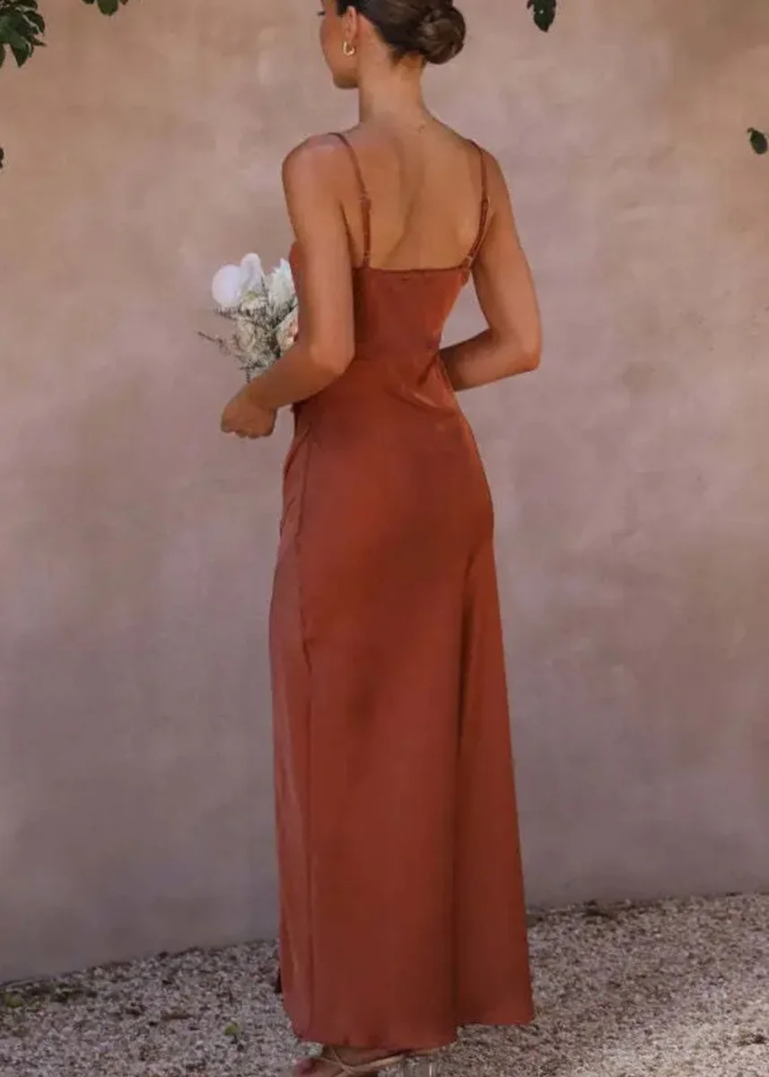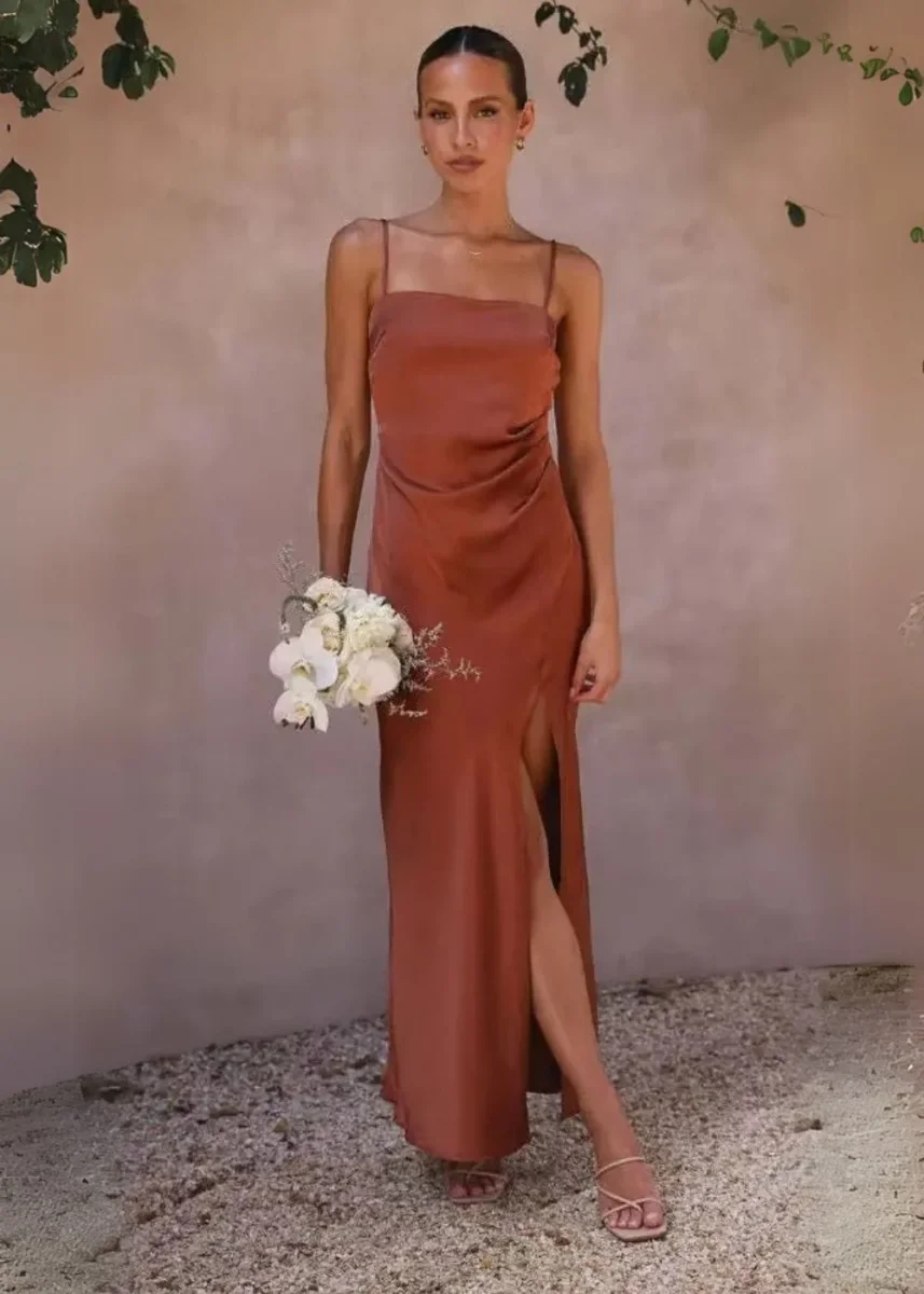 Laisse-toi séduire par cette sublime tenue mariage femme terracotta, parfaite pour un mariage ou un événement d’exception. Sa coupe fluide épouse tes formes avec subtilité, mettant en valeur ta silhouette des plus avantageuses. Son décolleté carré et ses bretelles fines apportent une élégance naturelle qui ne laisse personne indifférent, tandis que la fente latérale ajoute juste ce qu’il faut de sensualité.