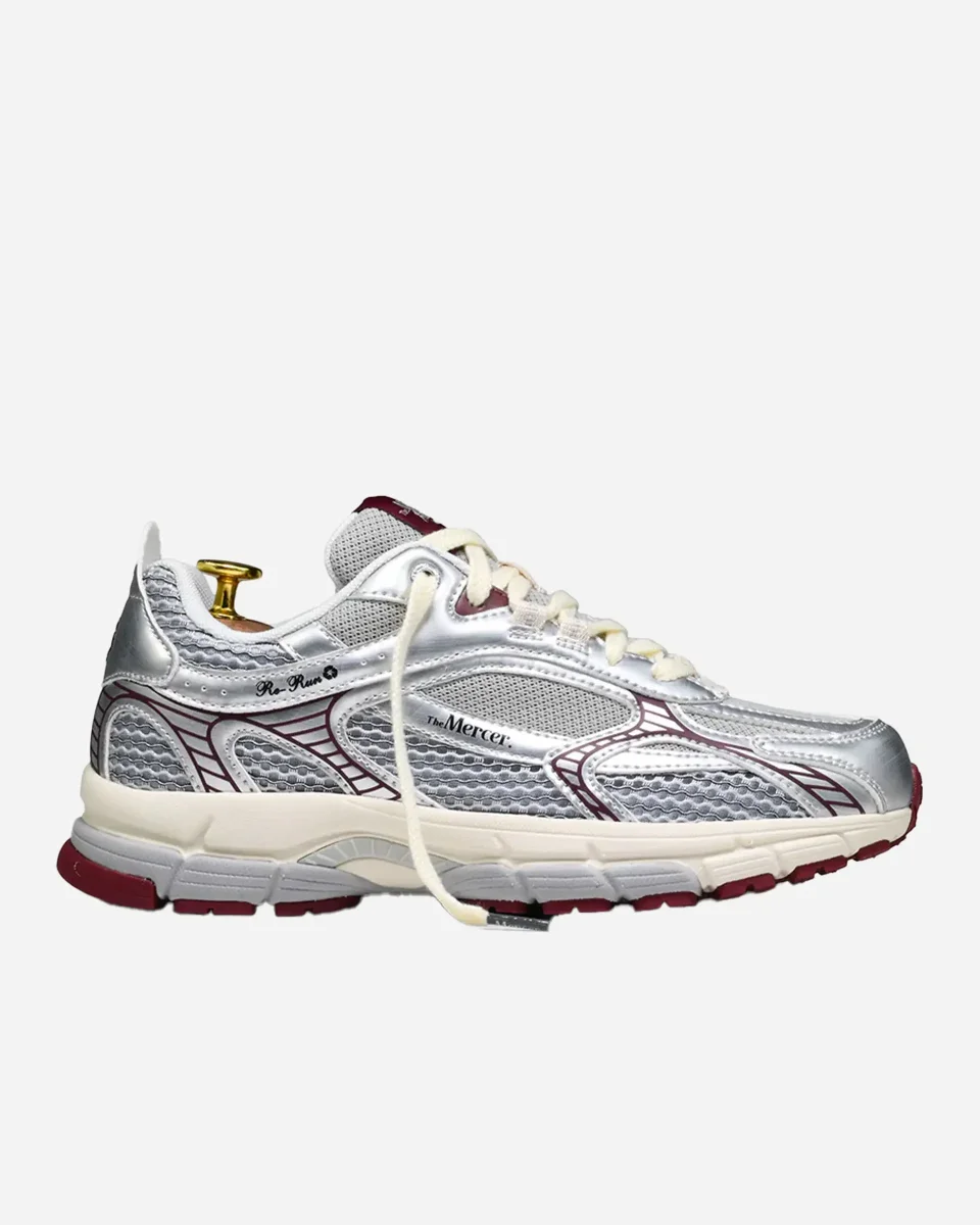Re-Run Twin Mesh, sneakers 2026, baskets rétro futuristes, PU argenté, double mesh, chaussures légères, style urbain, silhouette moderne, effet usure, basket tendance