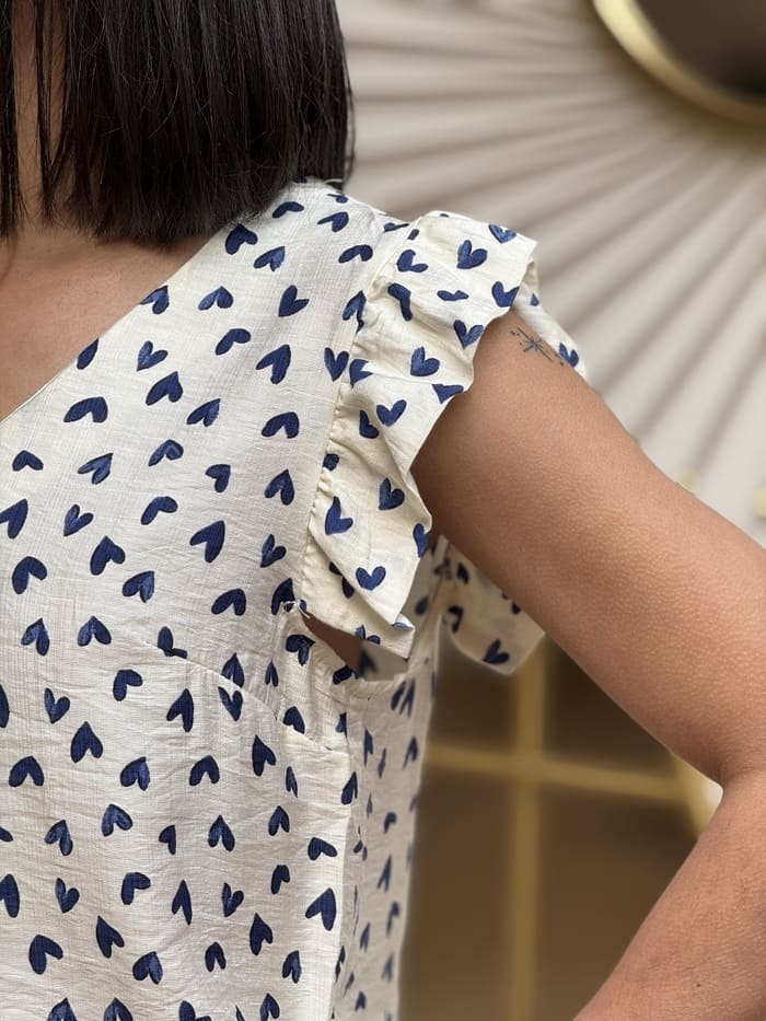 Top à mc col v imprimé petits cœurs Mathilde mesure 1m65. Elle porte la taille S pour ce modèle. Taille : S (36) / M (38) / L (40) Composition & entretien : 75% VISCOSE 25% POLYESTER Lavage à la main conseillé Besoin d’un conseil ? Consultez notre foire aux questions ou contactez-nous via notre […]