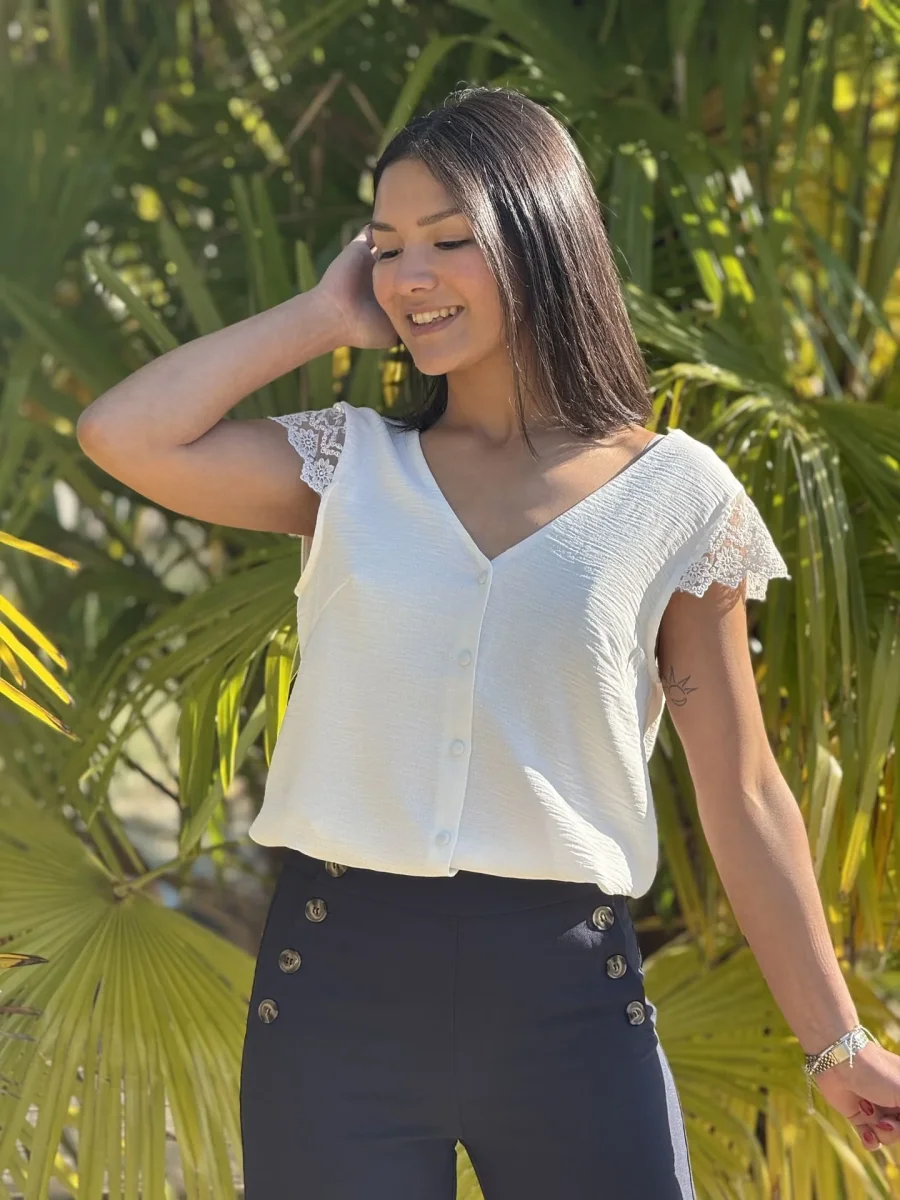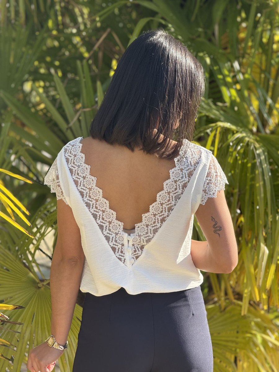 - top à mc dentelle col v avec boutons devant + dos ouvert