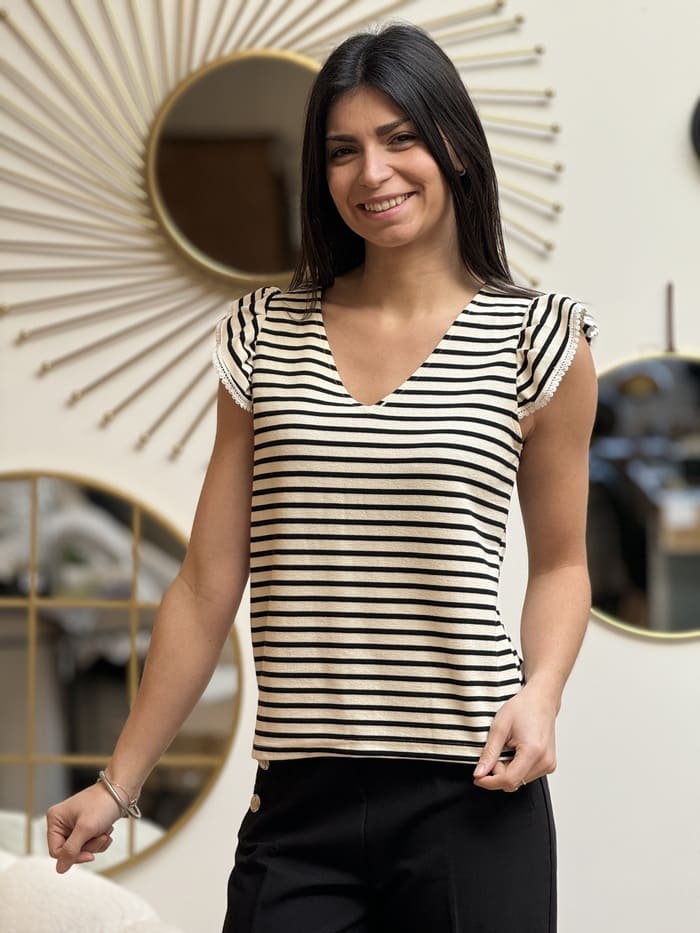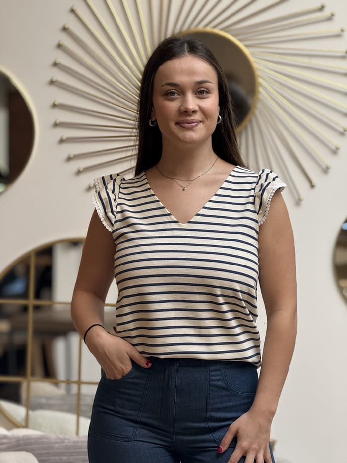 Juliette mesure 1m63. Elle porte la taille S/M pour ce modèle.