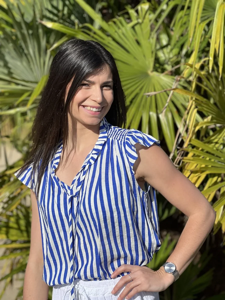 Justine mesure 1m69. Elle porte la taille S/M pour ce modèle.