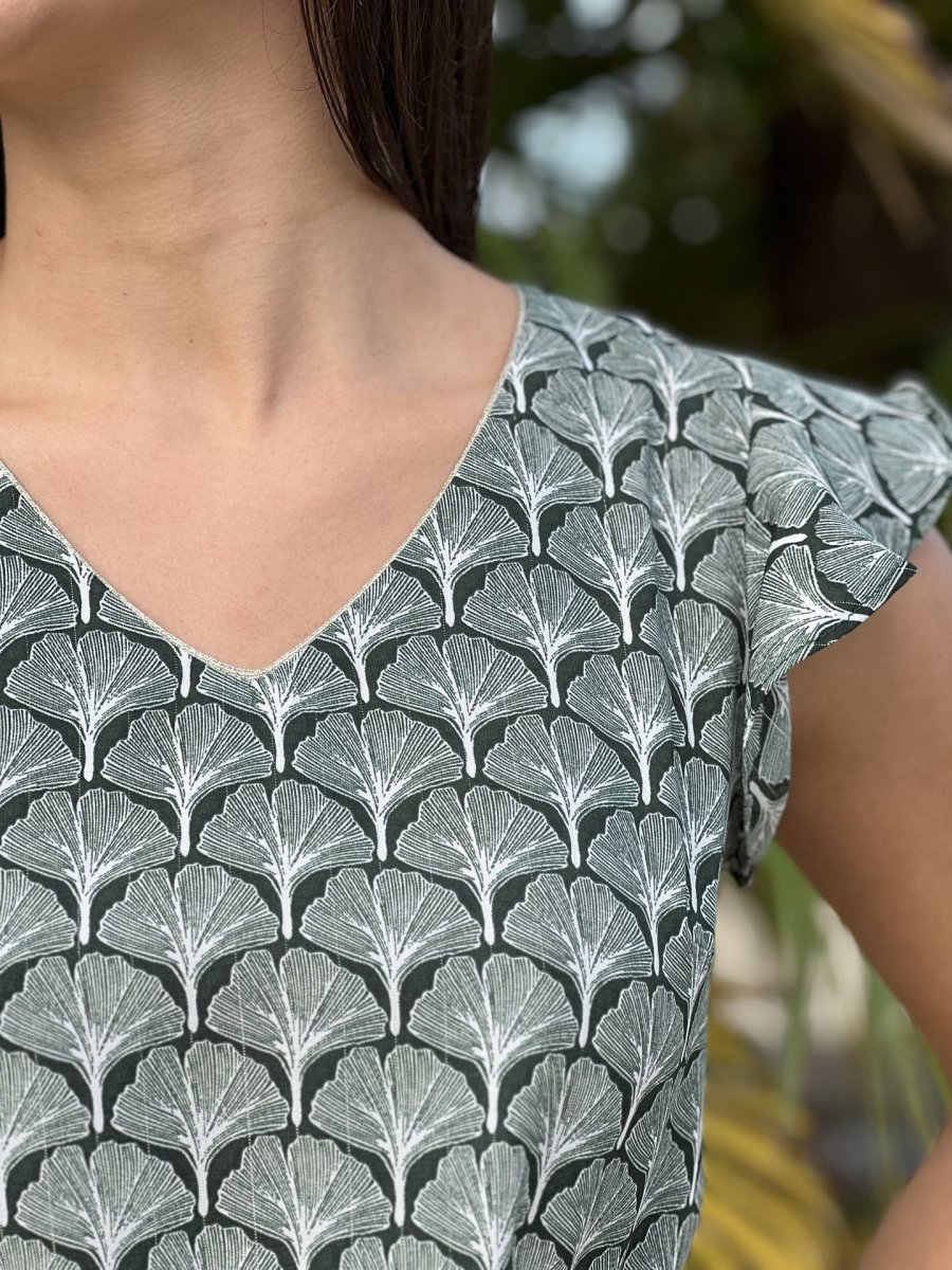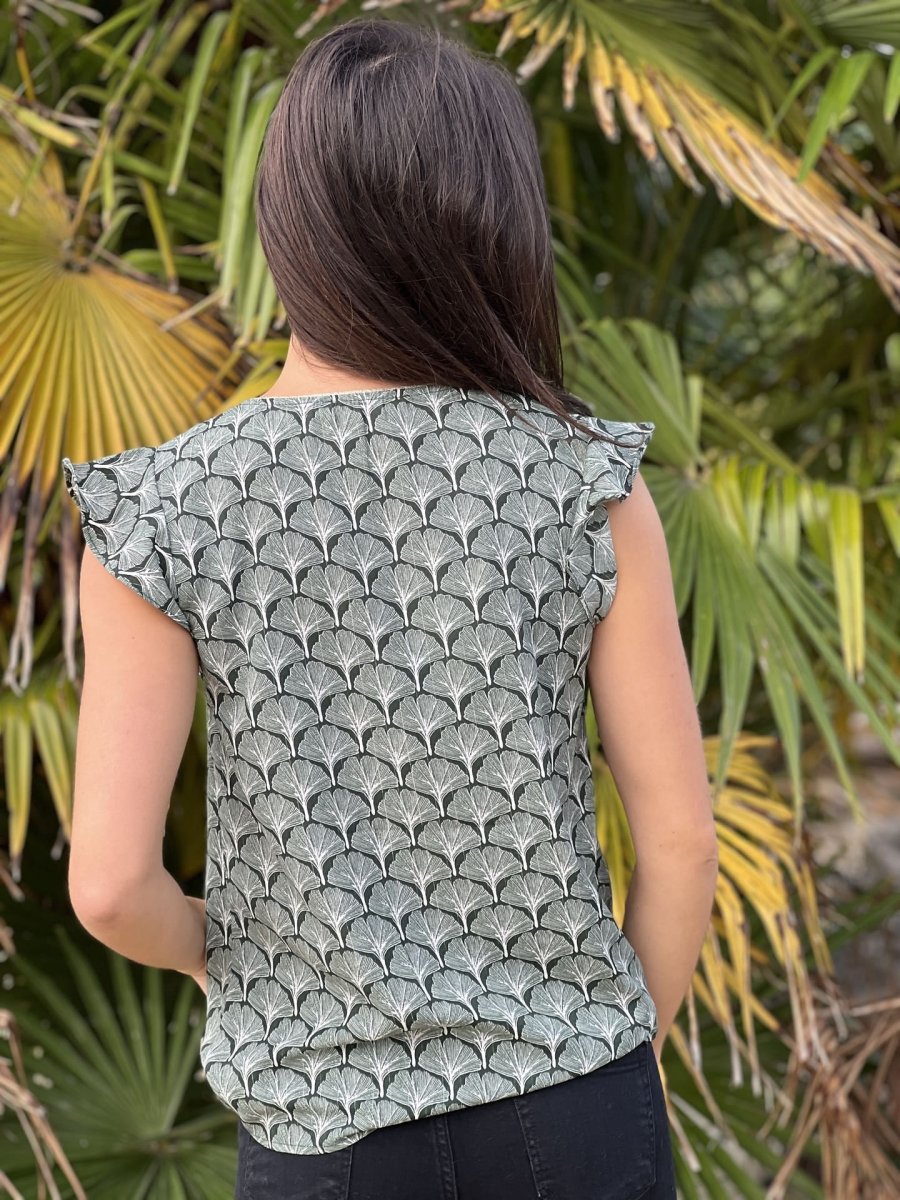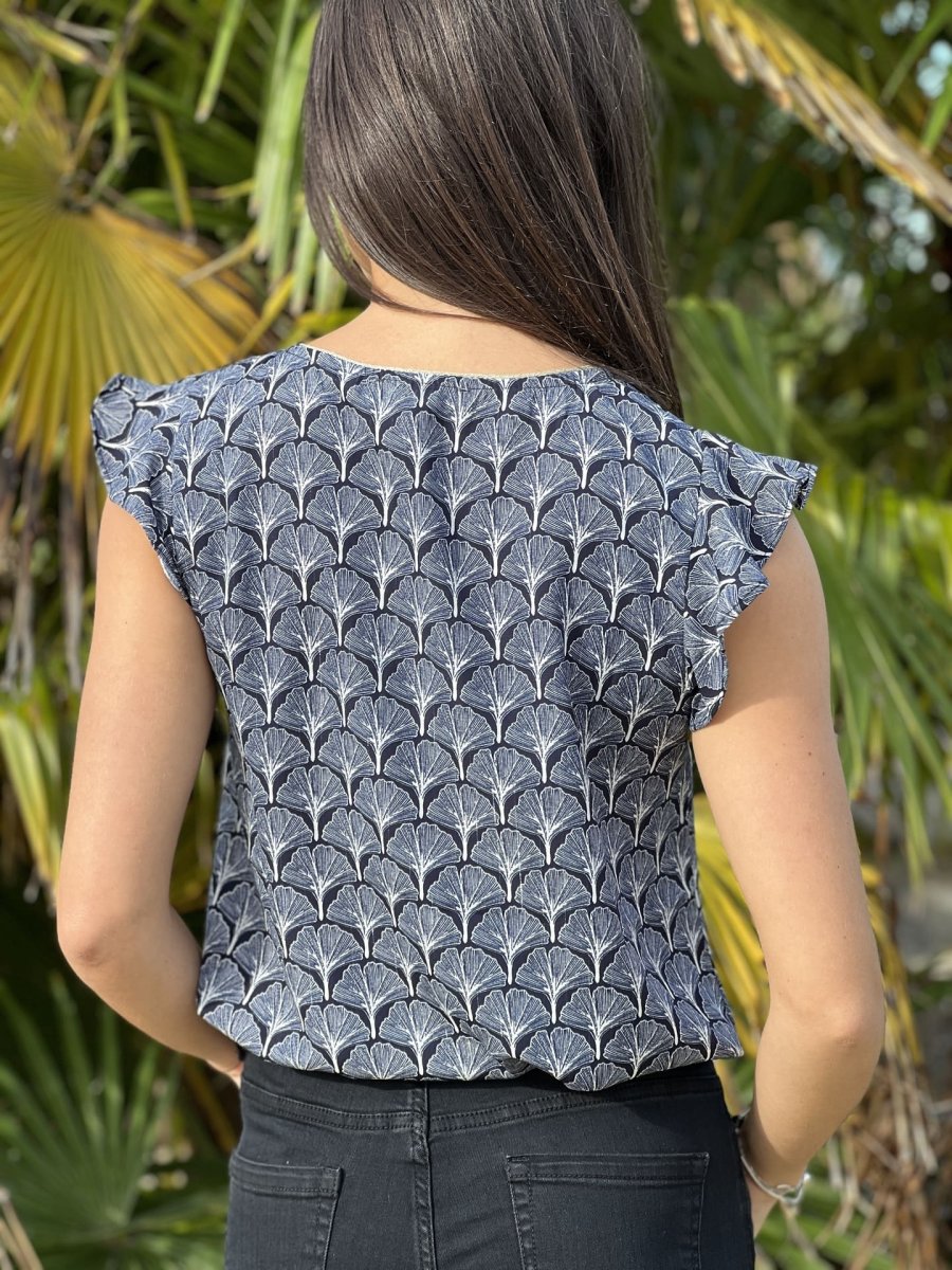 - Top à mc col v – imprimé éventail