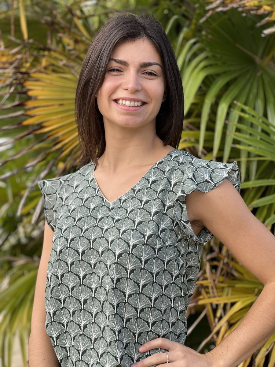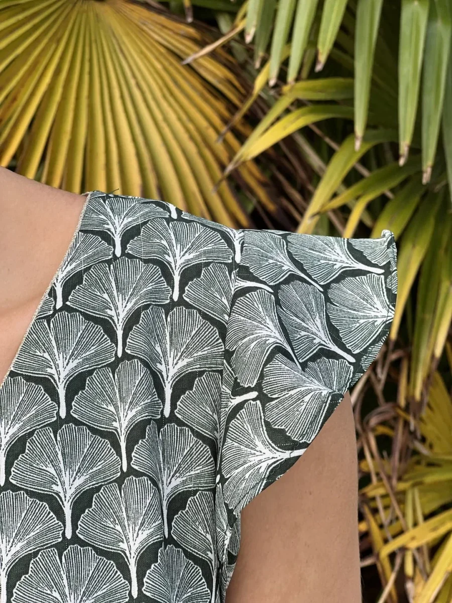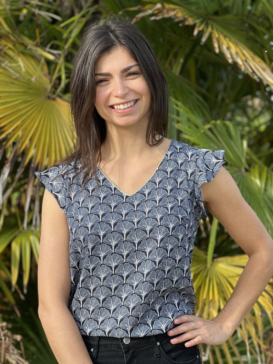 - Top à mc col v – imprimé éventail