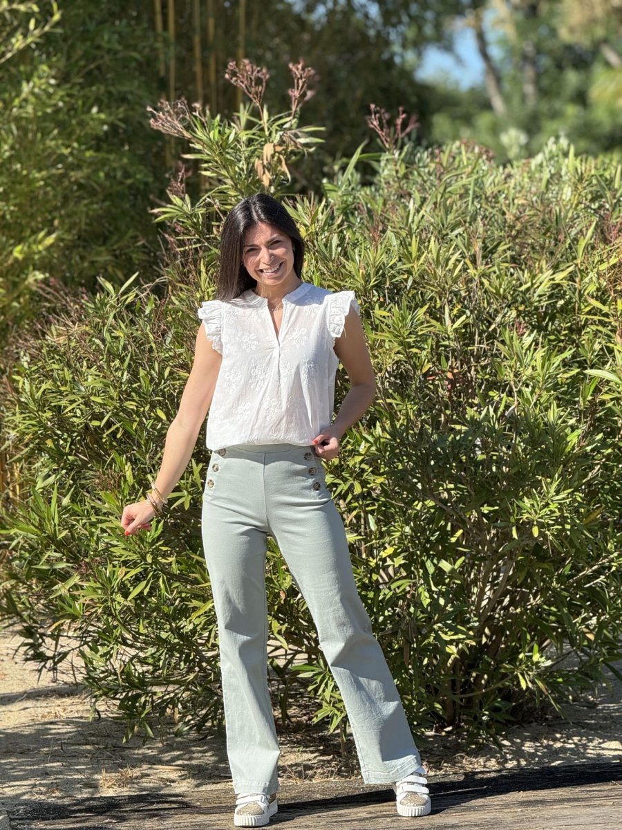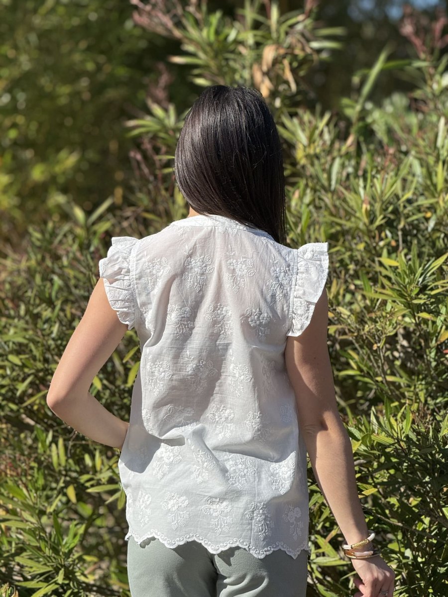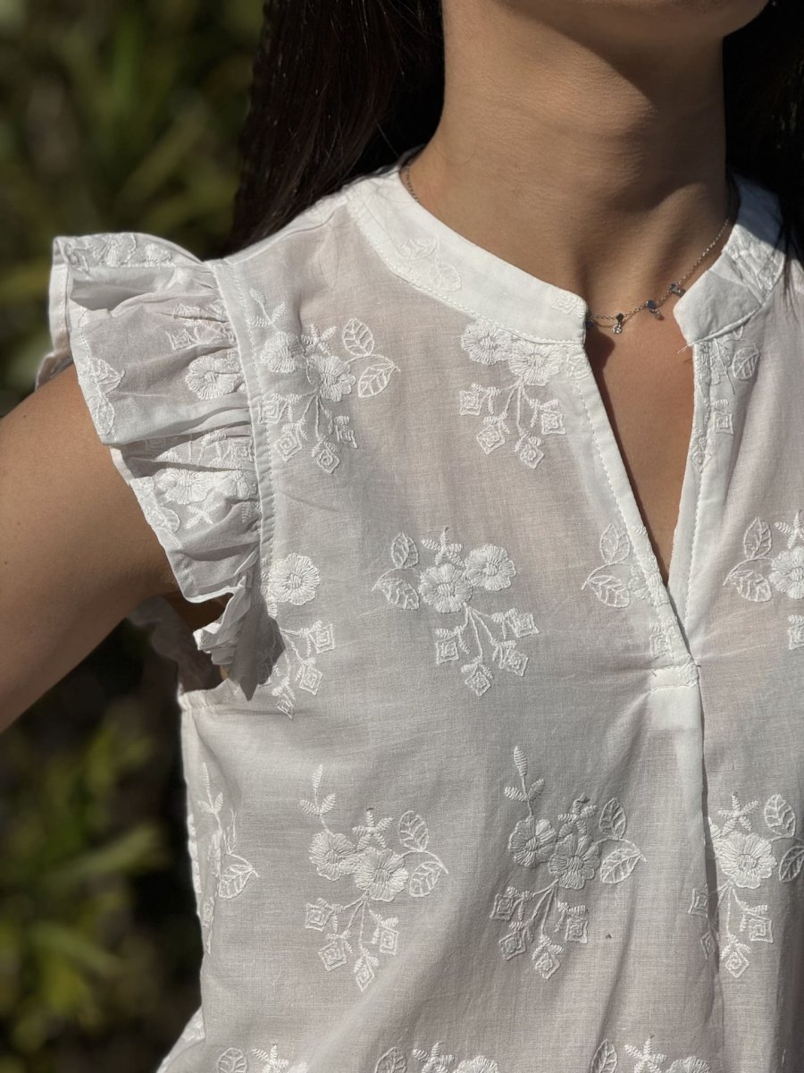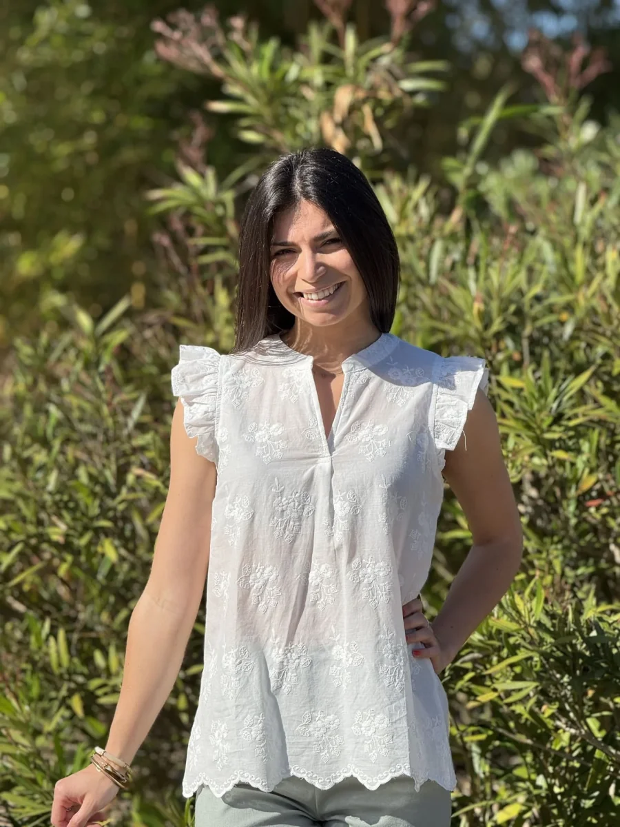 - Top à mc froufrou col v broderie