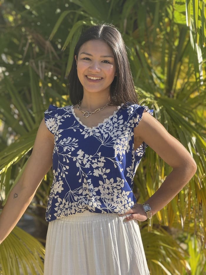 Margaux mesure 1m68. Elle porte la taille 2XL (44) pour ce modèle.
