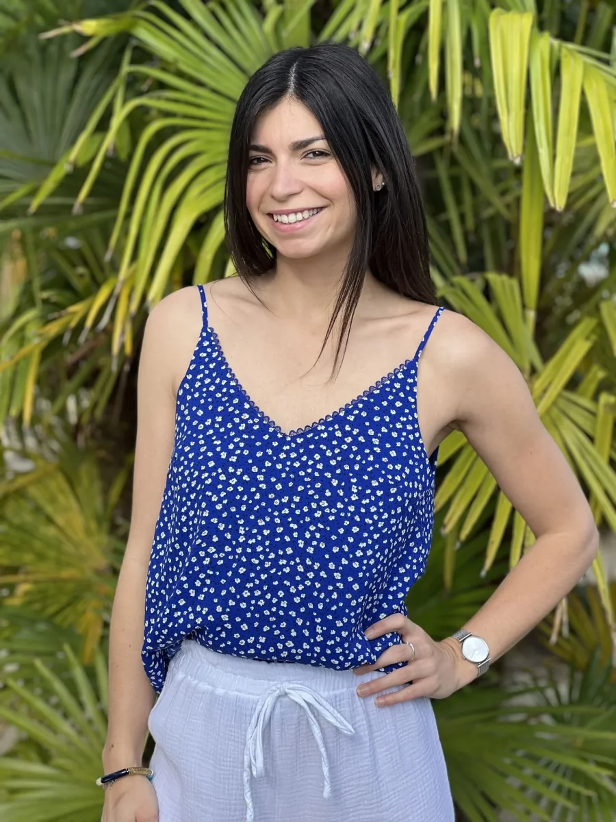- CARACO BRETELLE COL V – PETITS MOTIFS BLANCS