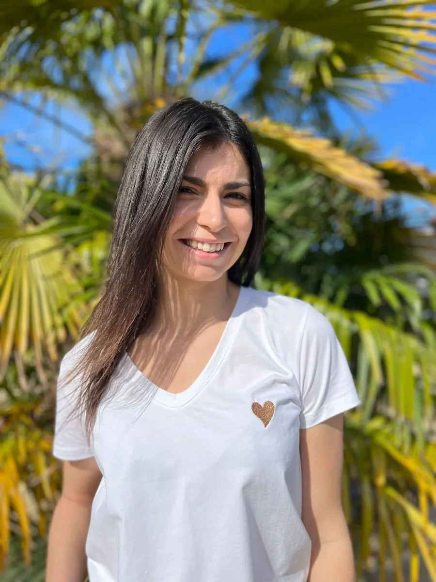 Justine mesure 1m69. Elle porte la taille S/M pour ce modèle. Nous vous recommandons de porter votre taille habituelle.