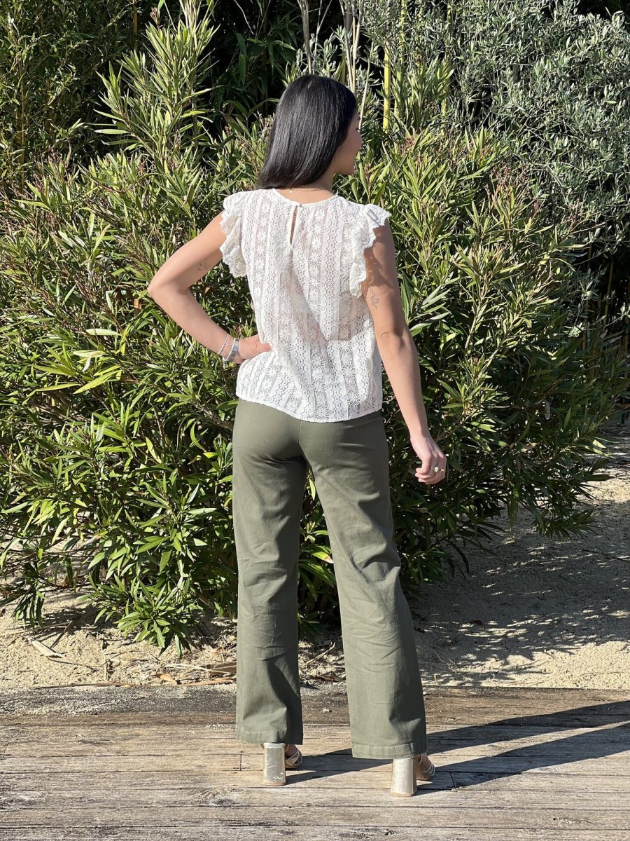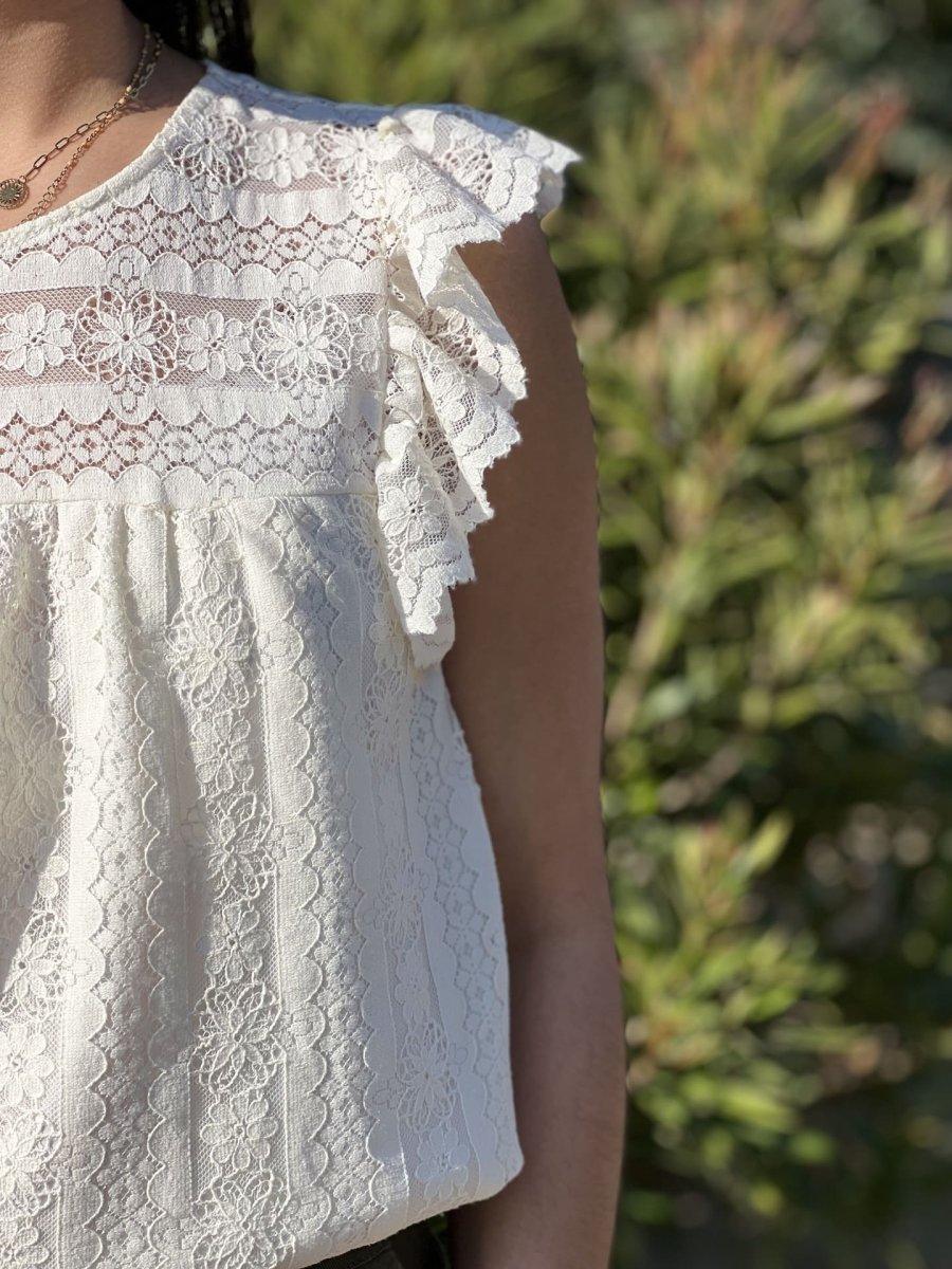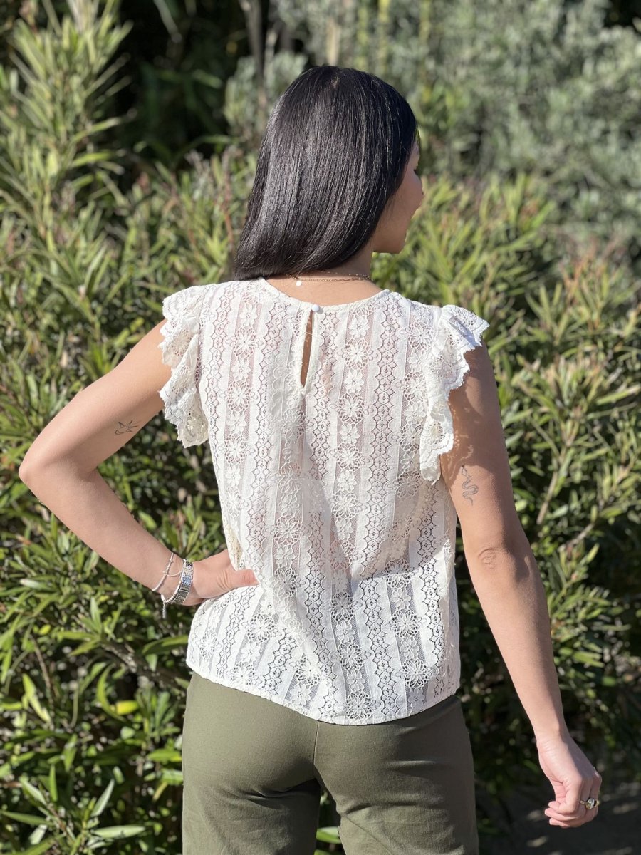 • Top à mc froufrou col rond broderie