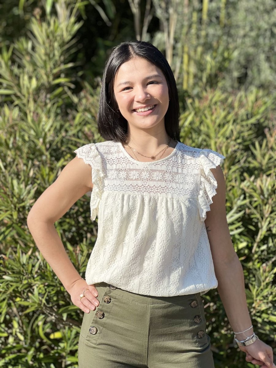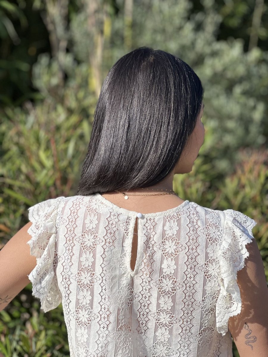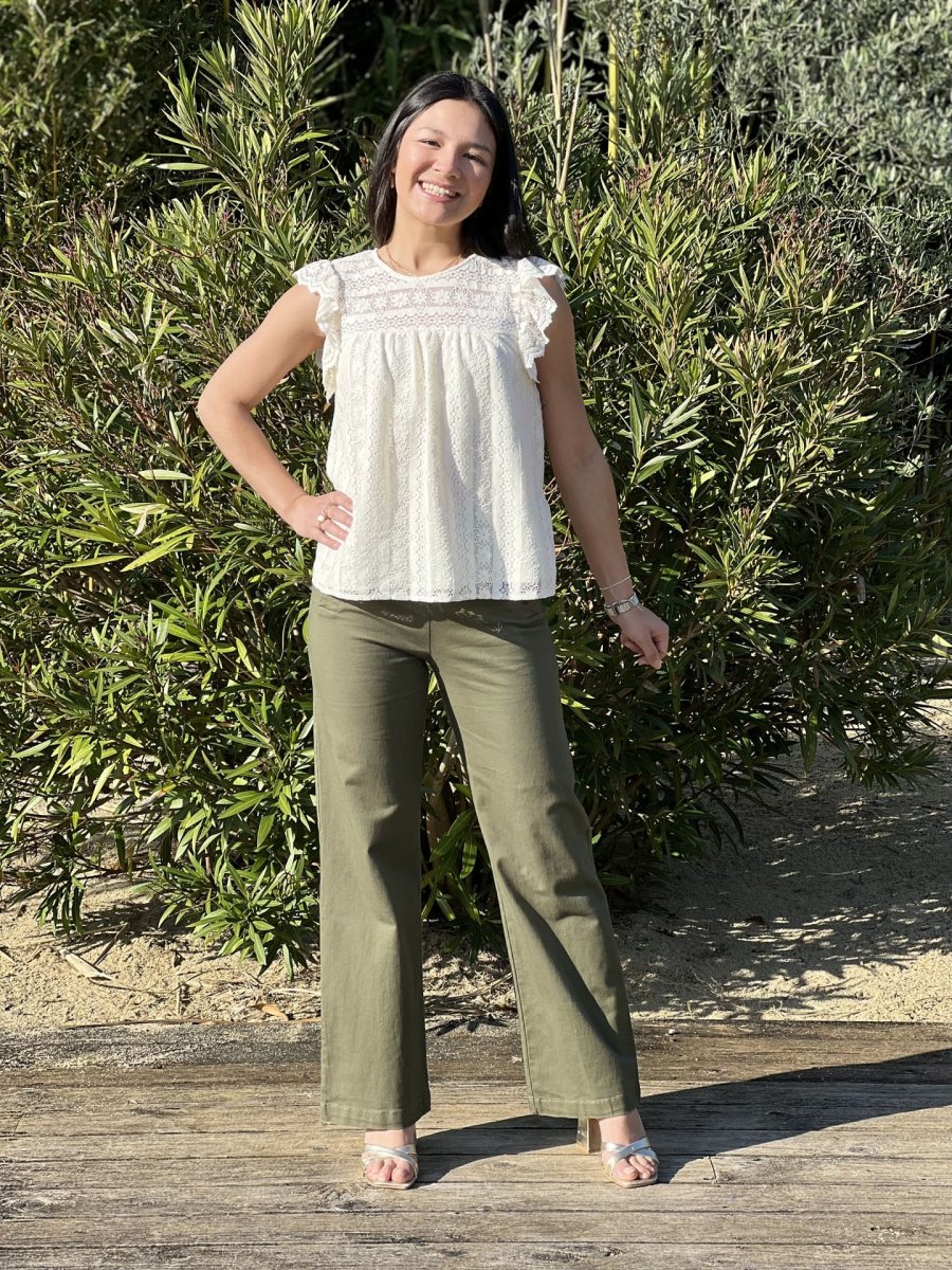 • Top à mc froufrou col rond broderie