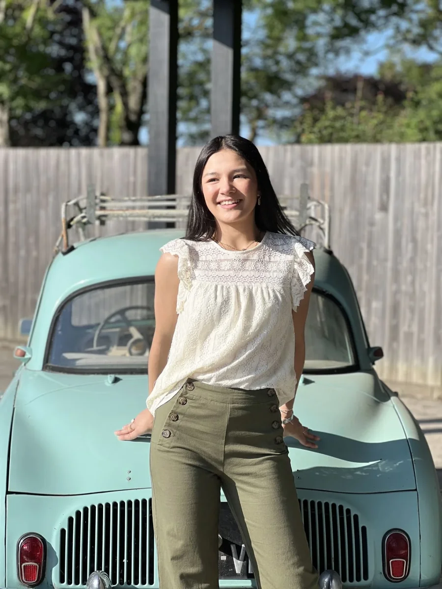 Mathilde mesure 1m65. Elle porte la taille S pour ce modèle.