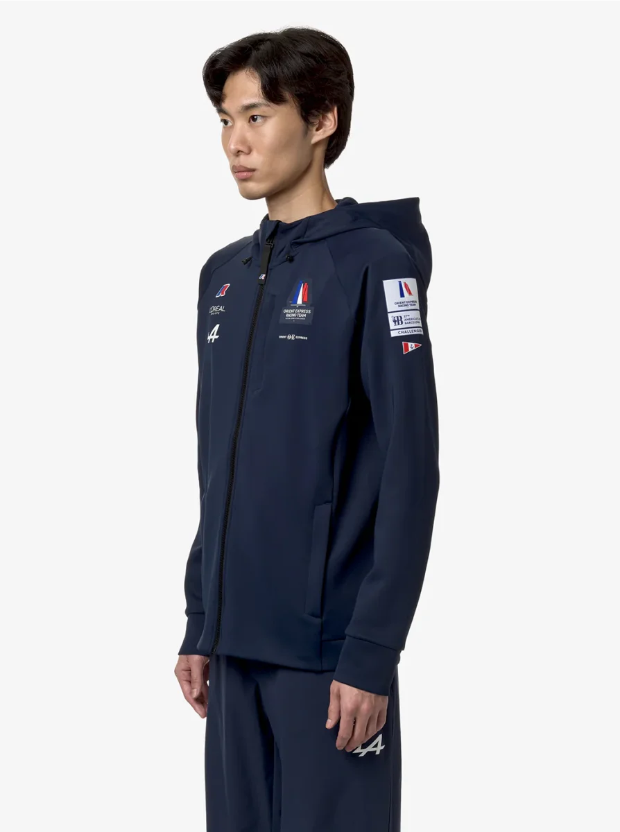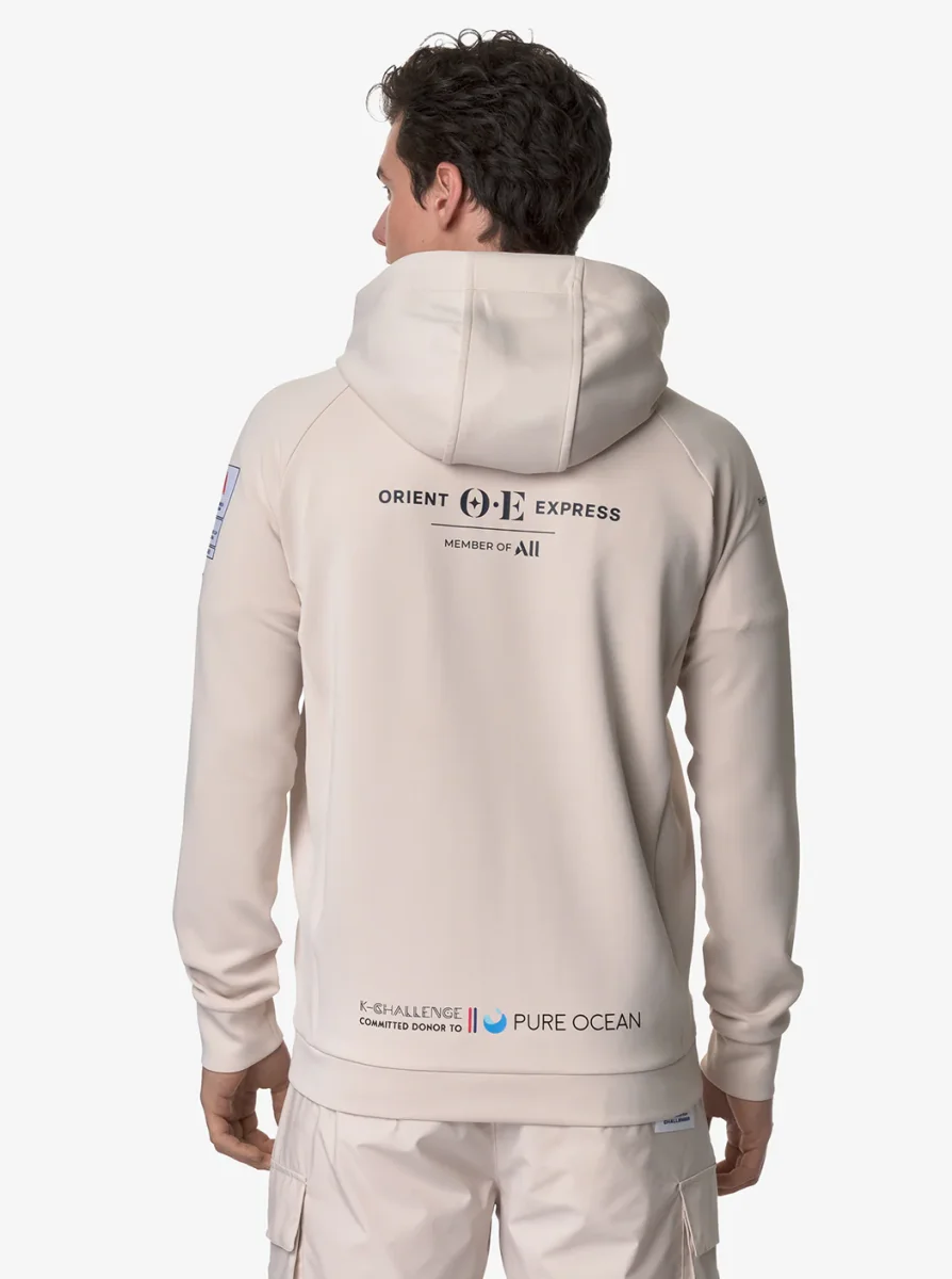Etaples Orient Express Team AC est la polaire slim fit pour homme qui célèbre le parrainage de l’Orient Express Racing Team pour la 37e America’s Cup. Elle est parfaite pour vivre chaque aventure quotidienne avec style. Fabriqué en tissu interlock extensible, avec une capuche réglable et une ouverture zippée sur le devant. Poches latérales et poches en forme de cœur. Les poignets et le bord inférieur sont en tissu extensible. Les logos extérieurs appliqués comprennent l’Orient Express, les sponsors et l’America’s Cup. Le logo K-Way est appliqué en silicone.