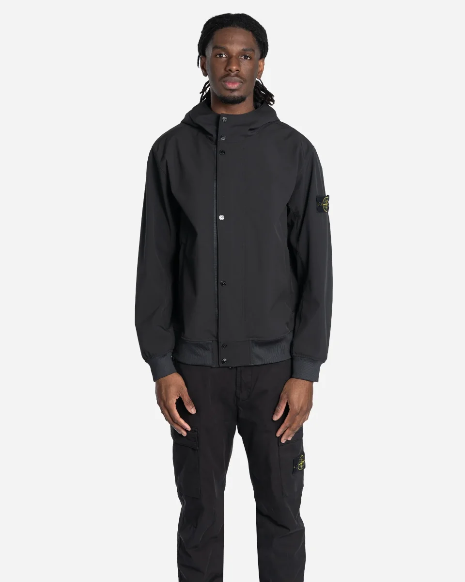 Veste à capuche Stone Island Light Soft Shell-R e.dye® noire