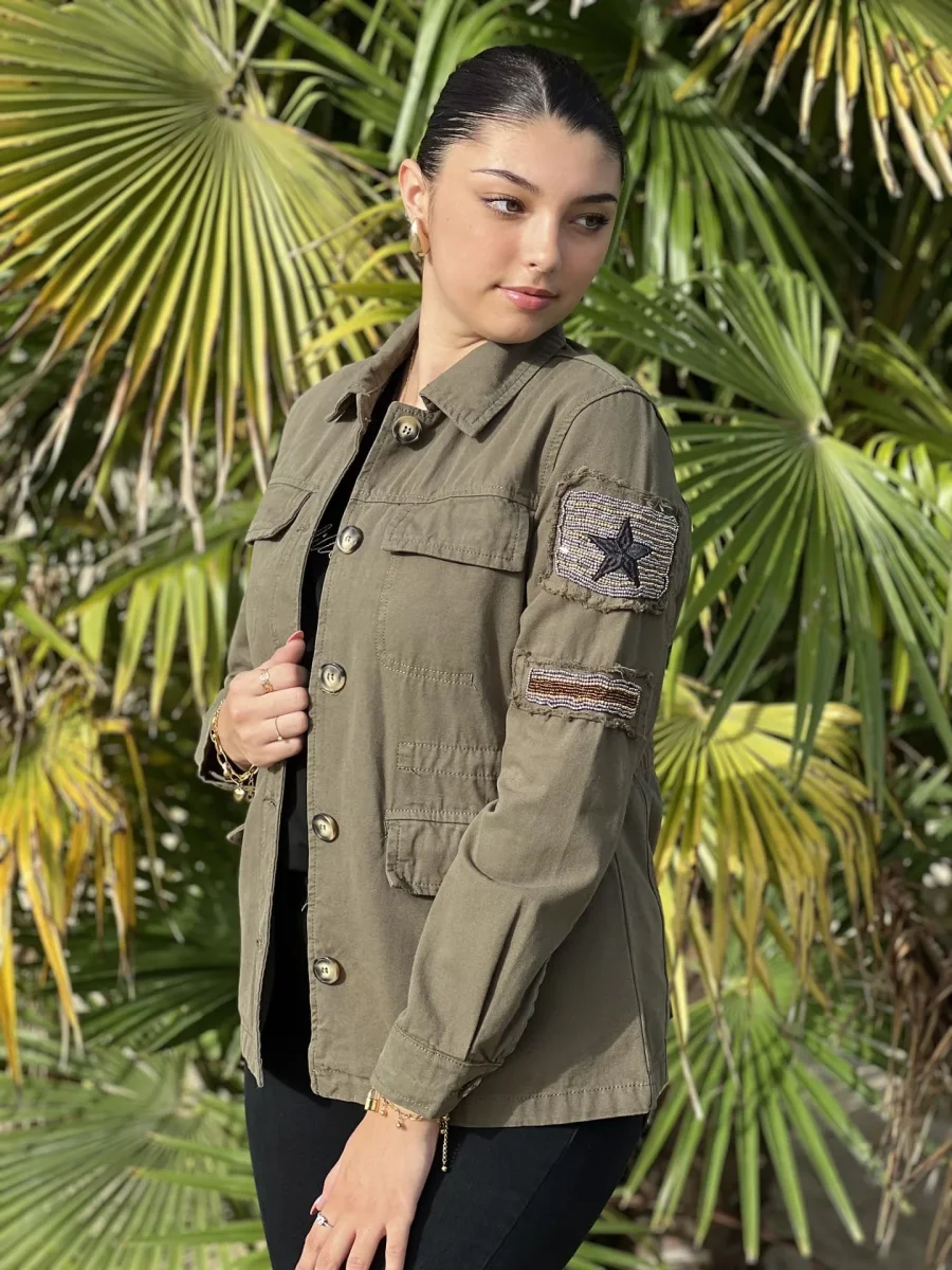 Blouson Boutonné Rivet Ami De Coeur en Nylon