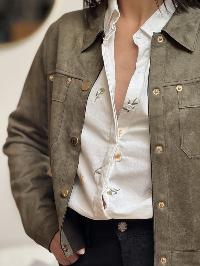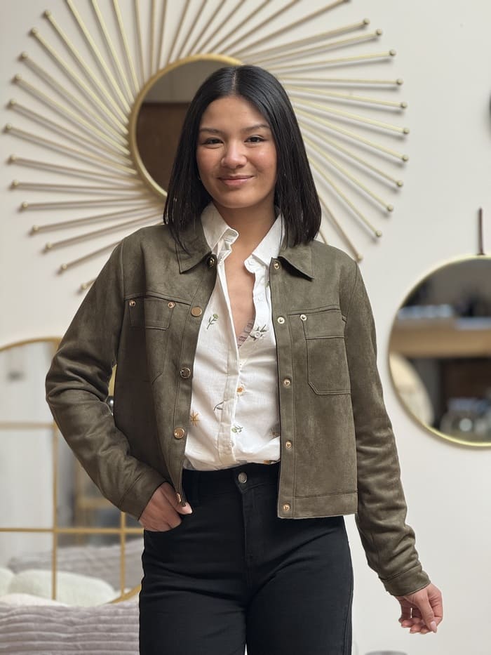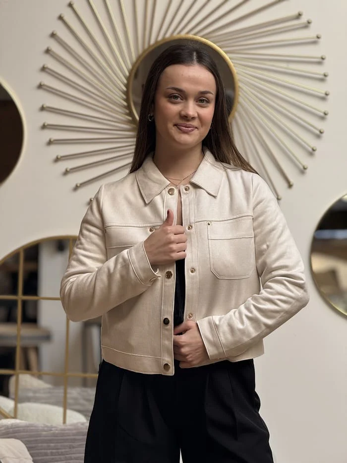 Veste courte avec col Deux poches plate dont une ac pressions Boutons dorés Juliette mesure 1m64 et Mathilde mesure 1m65. Elles portent la taille S pour ce modèle. Taille : XS (34) / S (36) / M (38) / L (40) / XL (42) Composition & entretien : 90% POLYESTER 10% LIN Lavage à la […]