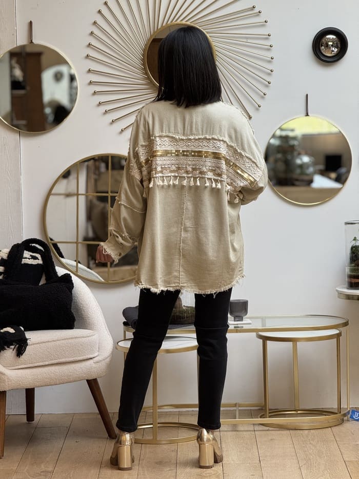 VESTE A ML DETAILS POMPOMS DANS LE DOS Taille : Mathilde mesure 1m65. Elle porte la taille Taille unique pour ce modèle. Taille : Taille unique Convient de la taille 36 à 42 Composition & entretien : 100% COTON Lavage à la main conseillé Besoin d’un conseil ? Consultez notre foire aux questions ou contactez-nous […]