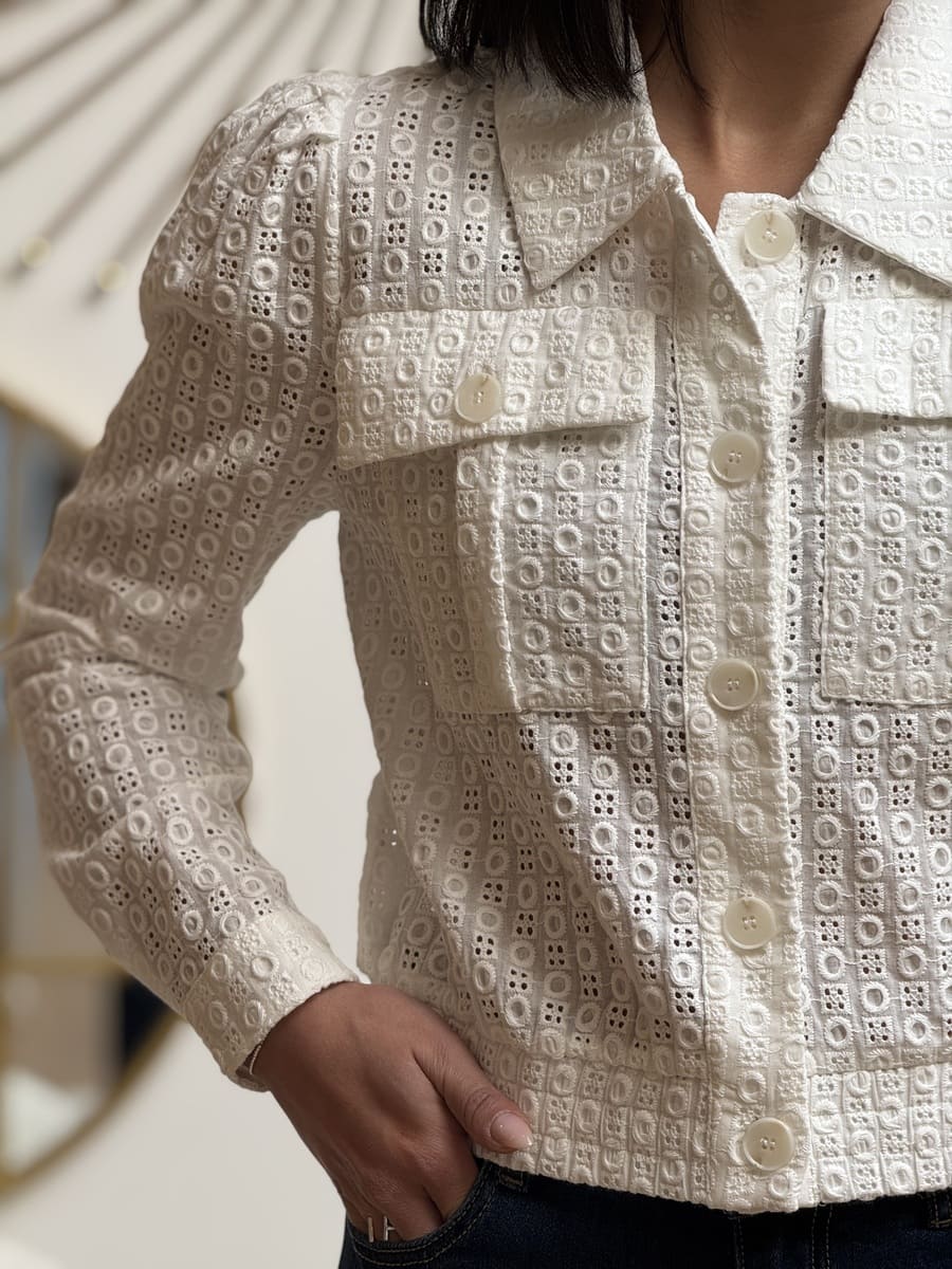 - VESTE courte à ml avec dentelle