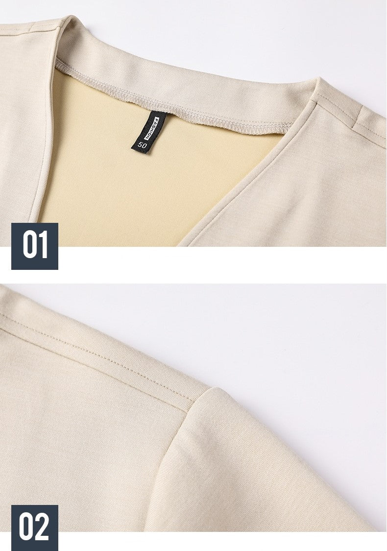 La combinaison du style asiatique élégant et de la couleur unie en font un vêtement idéal pour les activités décontractées ainsi que pour les occasions plus sérieuses.
