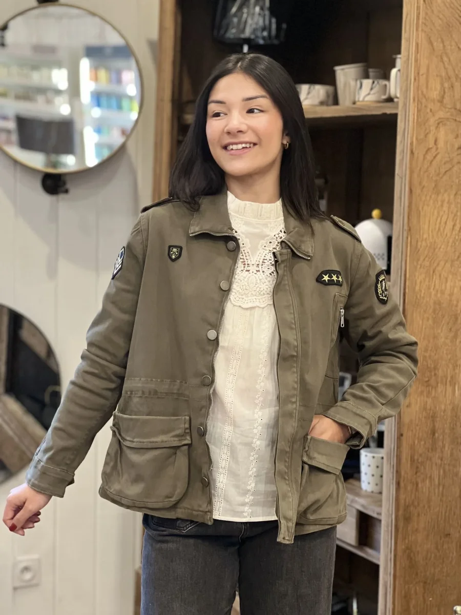 Blouson Boutonné Rivet Ami De Coeur en Nylon