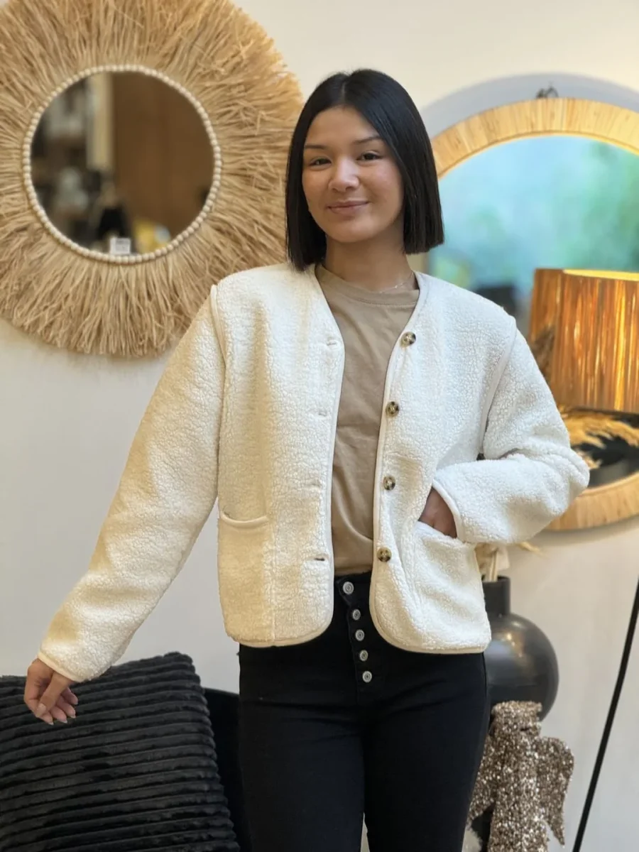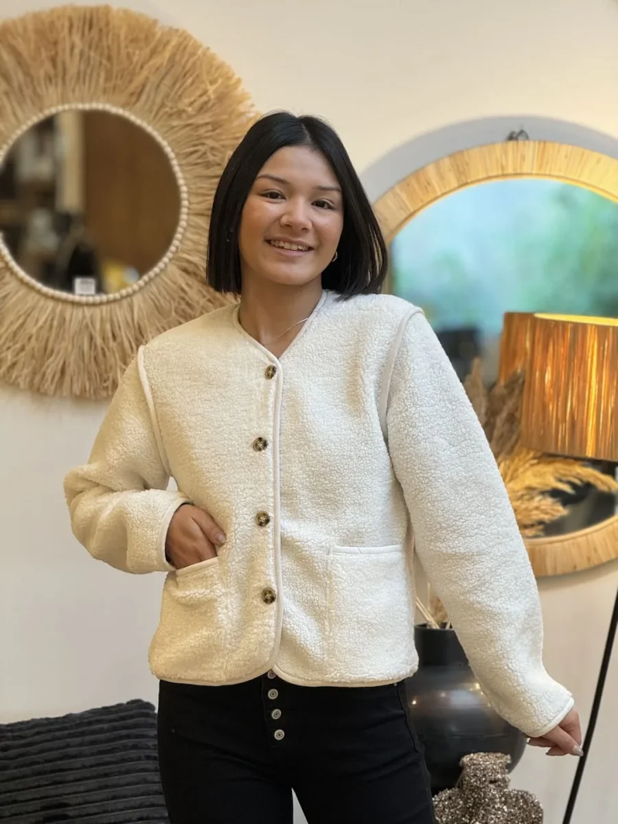 VESTE courte à ml moumoute Taille : Mathilde mesure 1m65. Elle porte la taille S/M pour ce modèle. Taille : S/M (36-38) et M/L (38-40) Composition & entretien : 100% POLYESTER Lavage à la main conseillé Besoin d’un conseil ? Consultez notre foire aux questions ou contactez-nous via notre formulaire de contact
