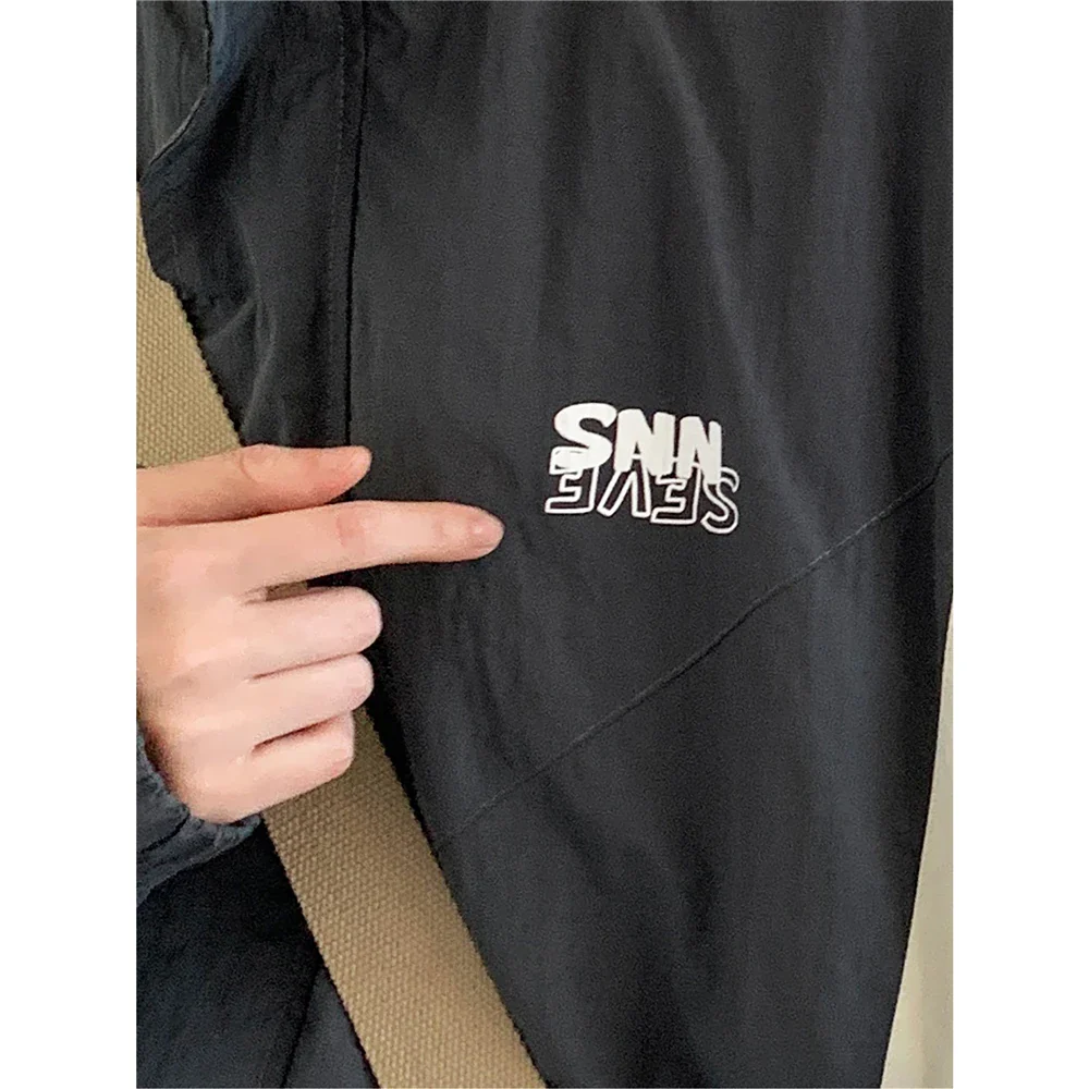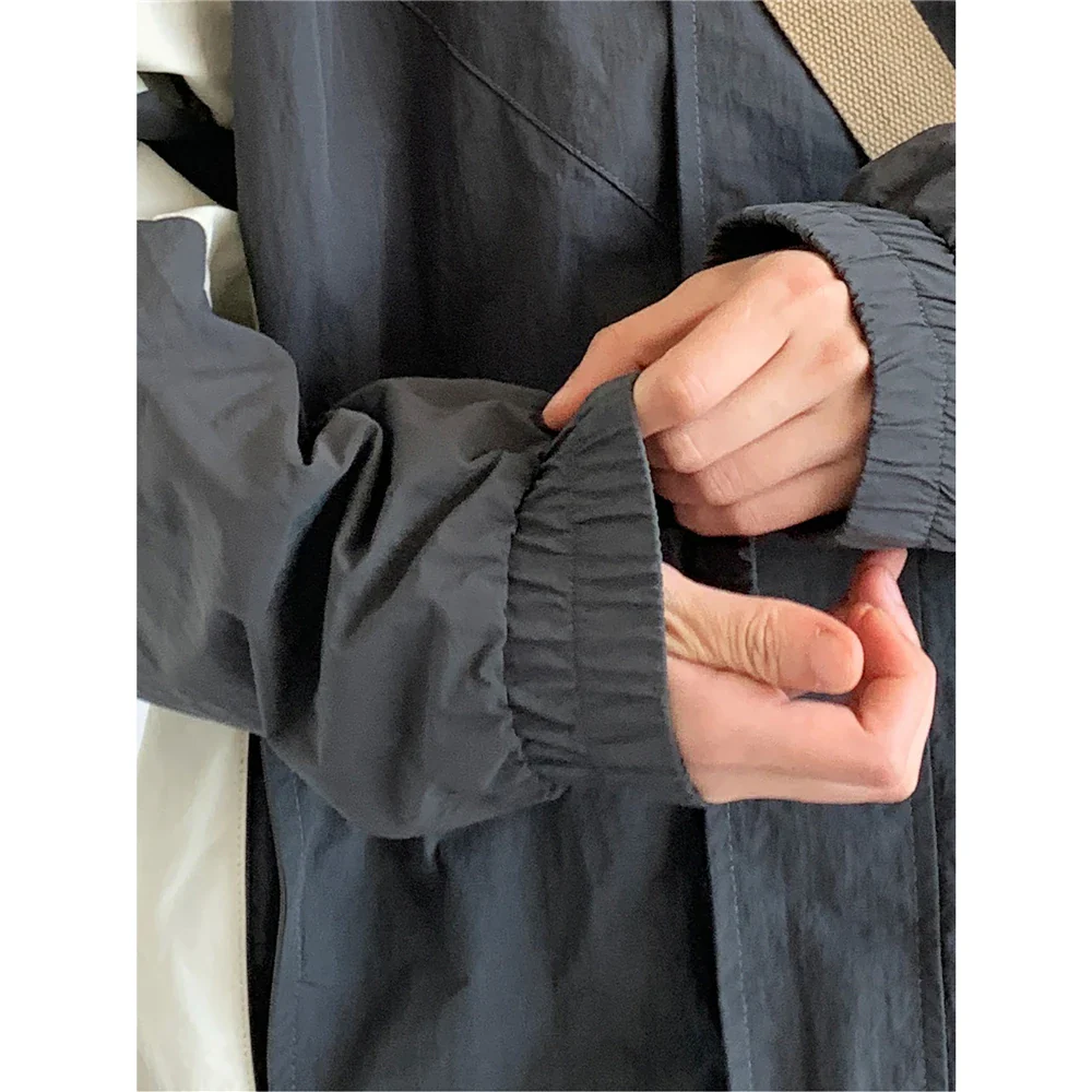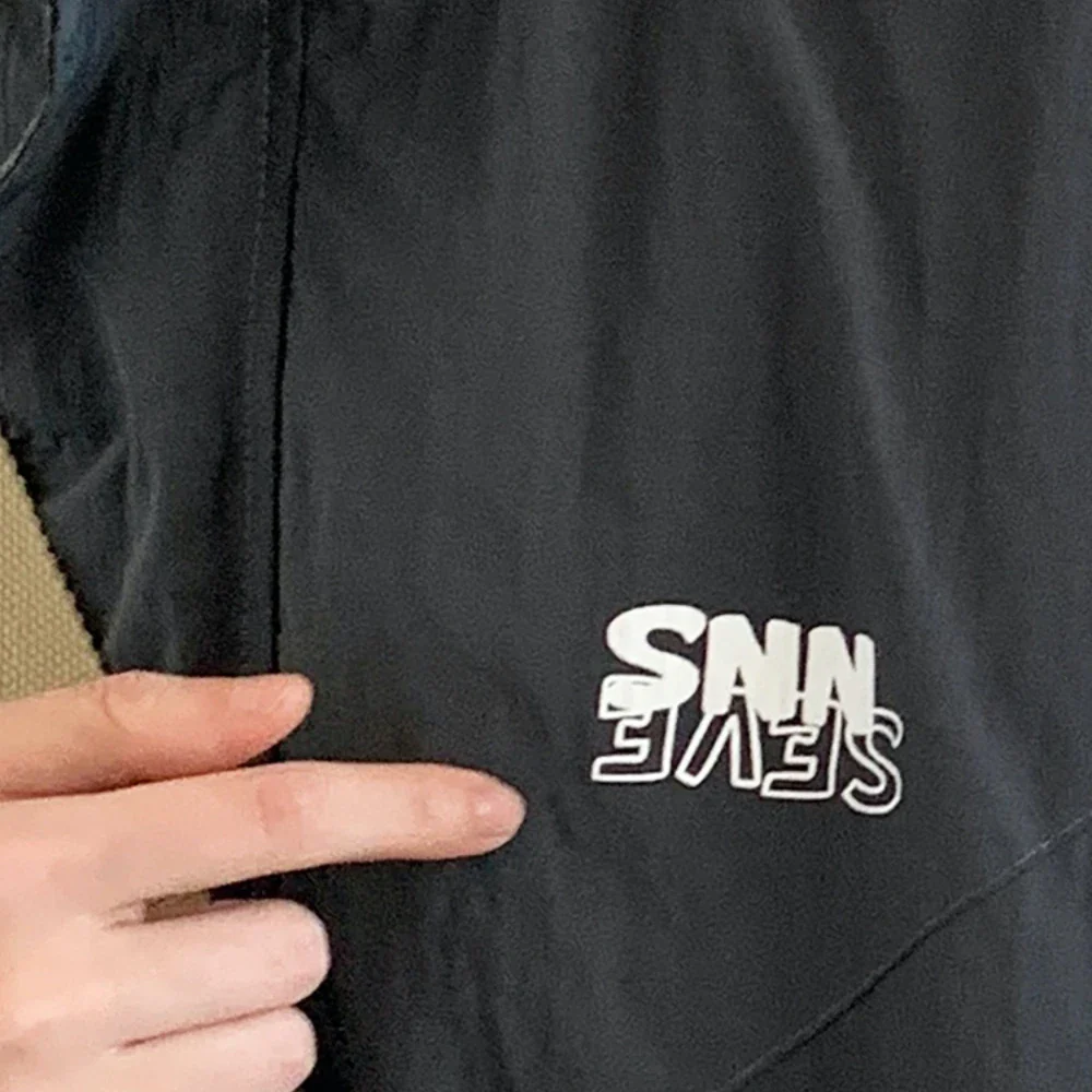 Cette veste coupe-vent s’inspire des créations techniques de Stone Island, où le color-blocking rencontre le streetwear japonais. Cette pièce distinctive, visible sur l’image en noir et blanc cassé, se démarque par ses empiècements contrastés et sa silhouette oversize.