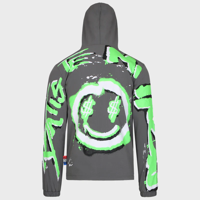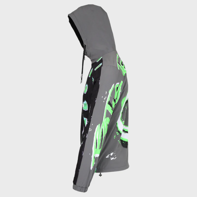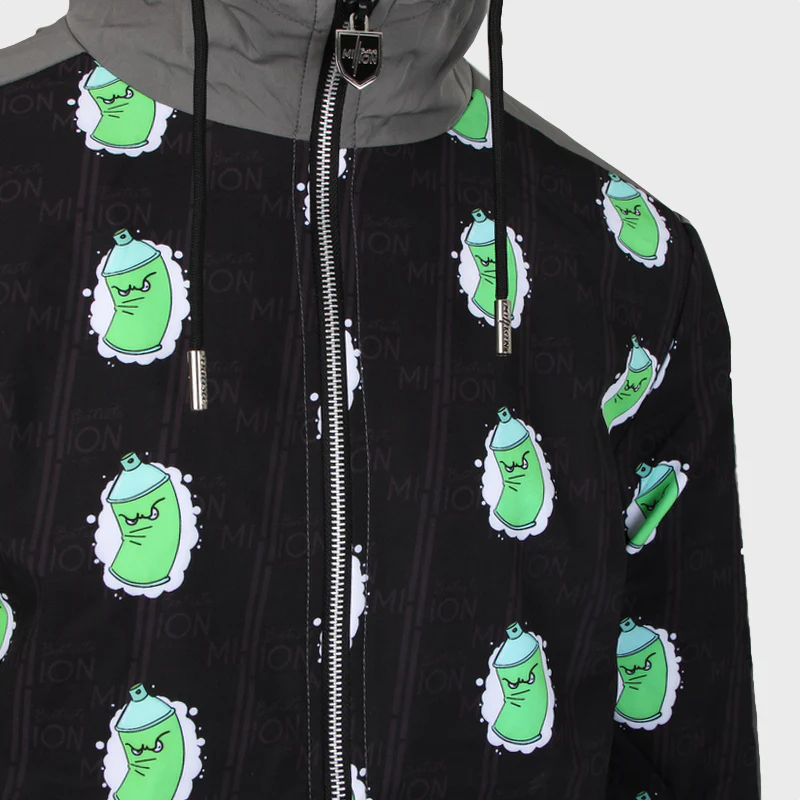 La veste est imperméable, avec à l’avant le motif « Tag Bomb » associé a la planche emblématique Batiste Million. Dans le dos, un motif graffiti sérigraphié sur toute la surface arrière.