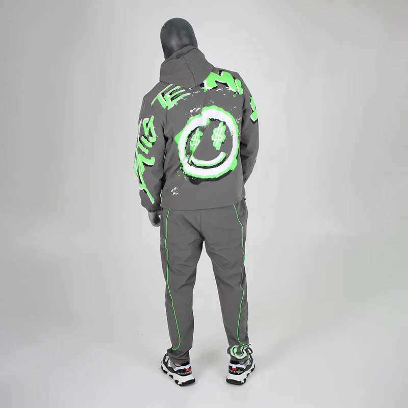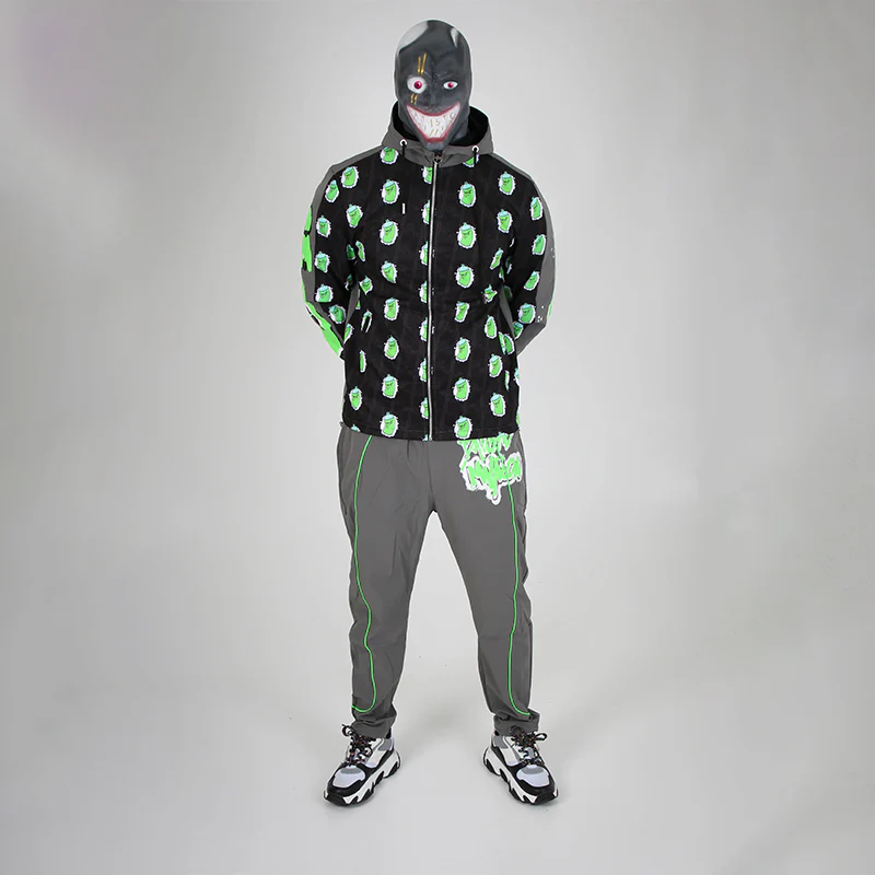 L’ensemble « Tag Bomb »: Composée d’une veste et d’un pantalon de survêtement, cette tenue est inspirée de l’univers du graffiti.