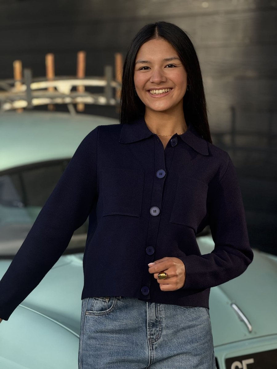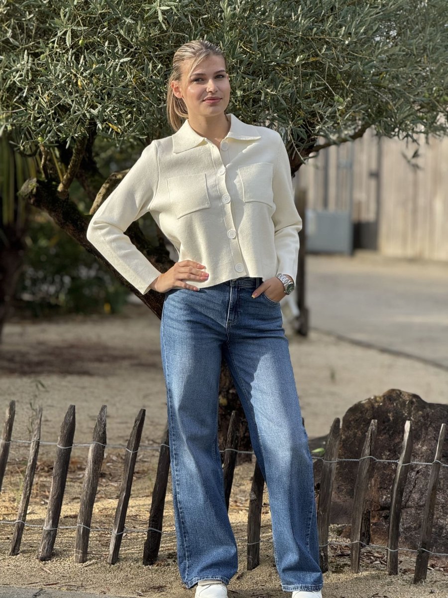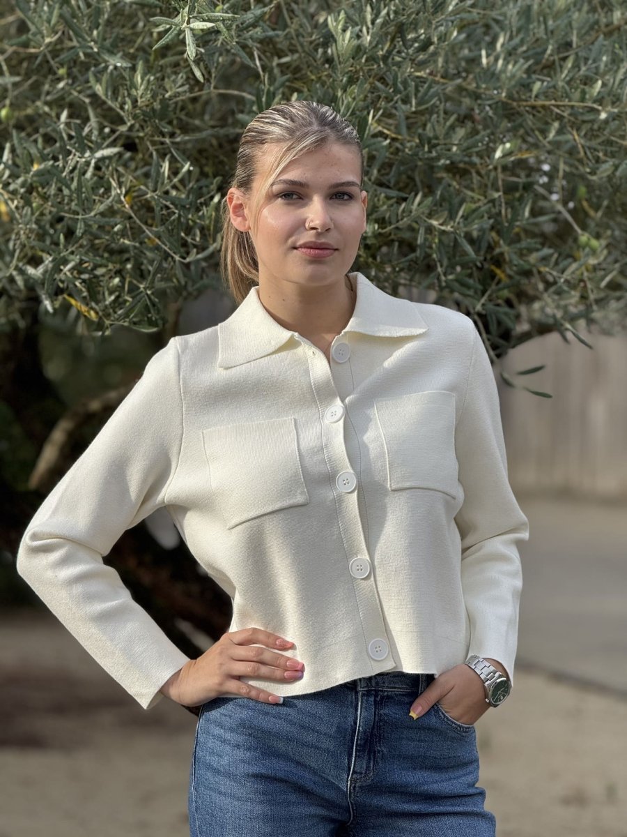 - VESTE COURTE à ml 2 poches sur poitrine avec boutons