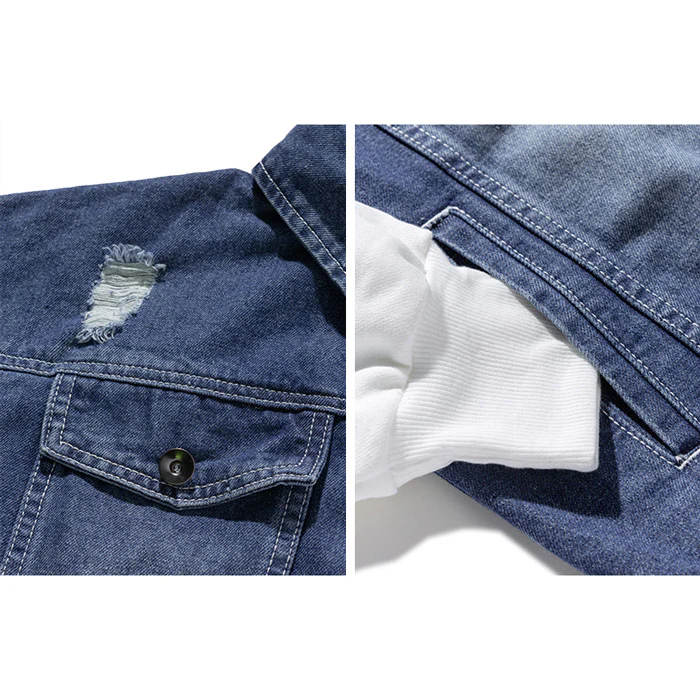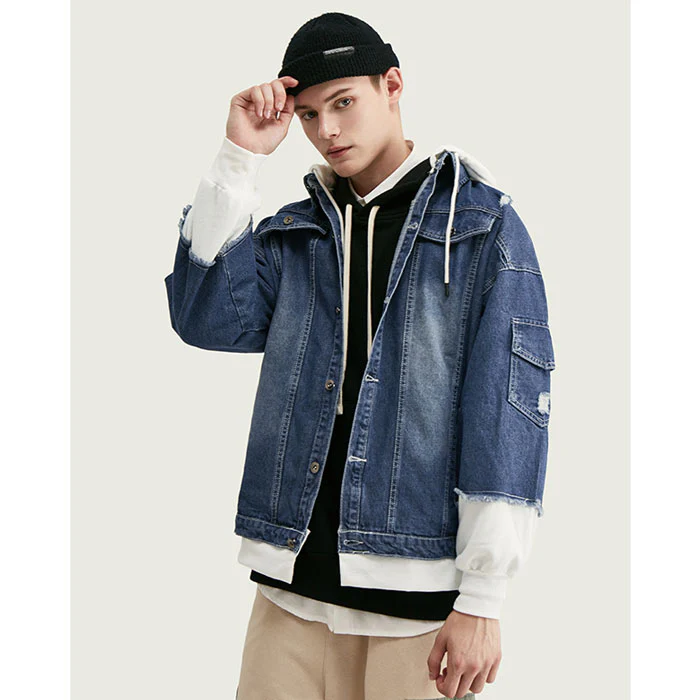 Cette pièce est confectionnée en coton denim de haute qualité. Son tissu doux et épais procure une sensation de toucher agréable. En plus d’être agréable à porter, cette veste denim avec capuchon est très prisée par les personnes soucieuses de la mode. Elle se porte de façon décontractée avec un pantalon en coton. Cette veste sweat en jean ne manquera pas d’attirer les regards avec ses petits trous au niveau de l’épaule, ajoutant une touche décontractée à l’ensemble de la veste. Elle est équipée d’une capuche à cordon de serrage et des pattes de boutonnage sur les poches.