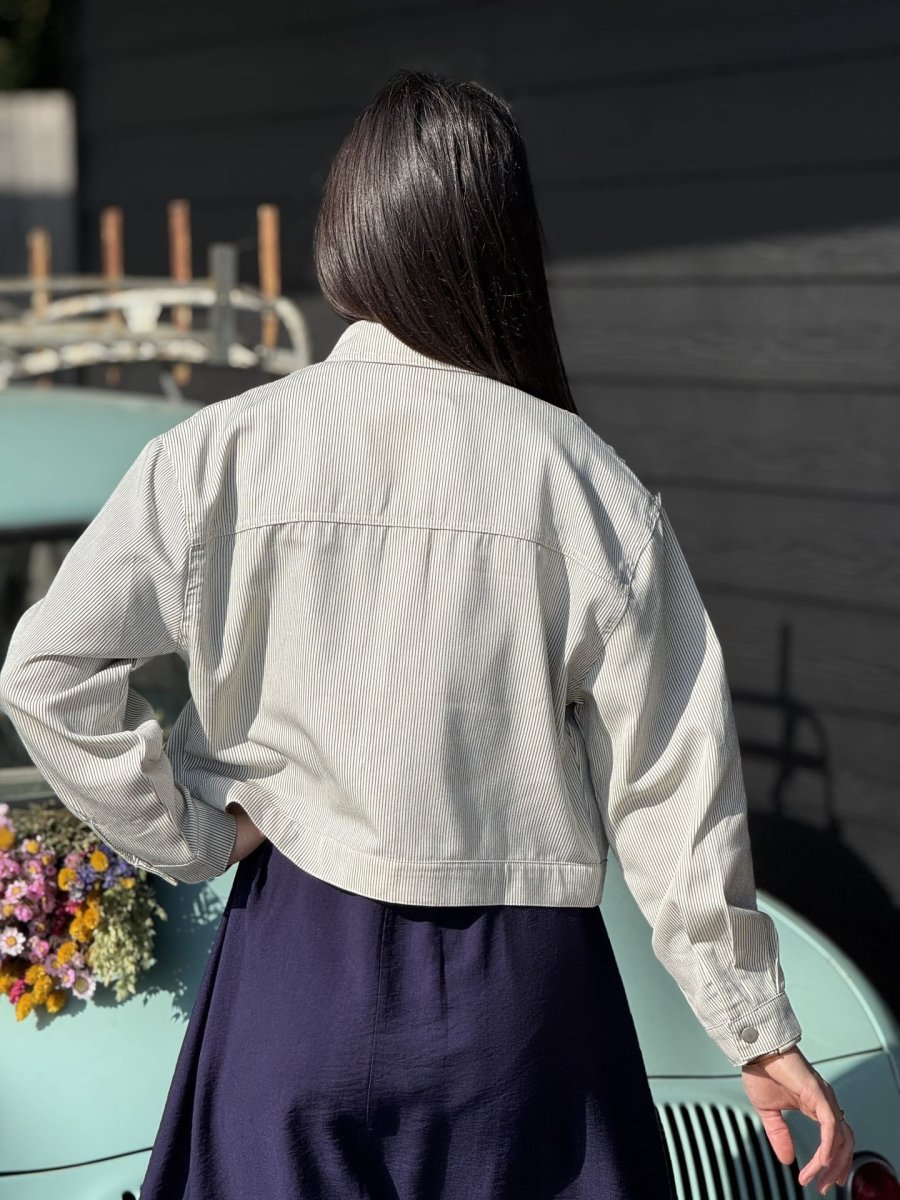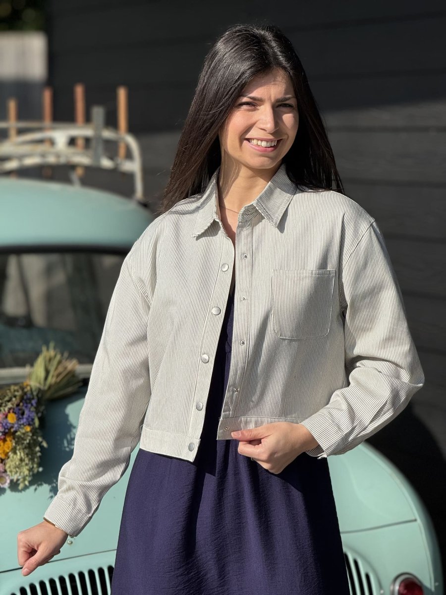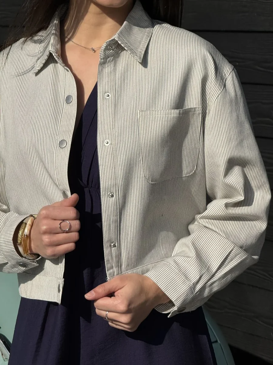- VESTE courte à ml 1 poche sur poitrine imprimé rayures + boutons
