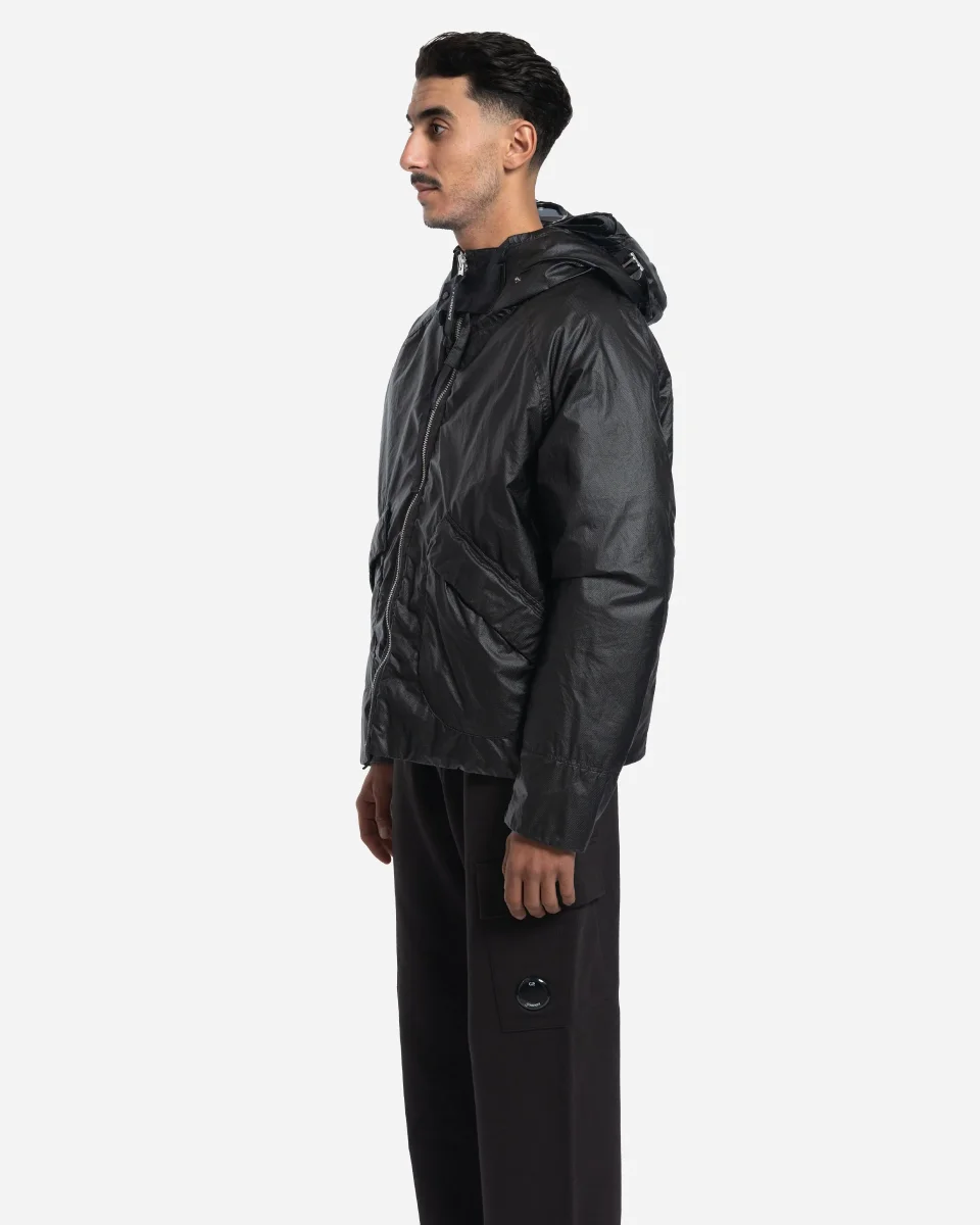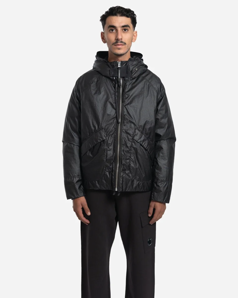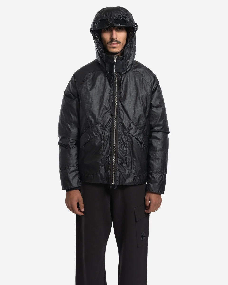 Veste, Goggle, C.P. Company, Opal, nylon multifilament, membrane transparente, capuche réglable, sangles dorsales, rabat facial, duvet canard, teint en pièce, coupe régulière.