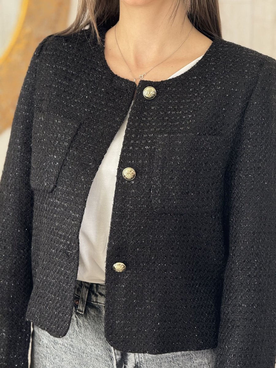 veste courte boutons dorés deux poches carré devant Taille : Louann mesure 1m64. Elle porte la taille S (36) pour ce modèle. Taille : XS (34) / S (36) / M (38) / L (40) / XL (42) Composition & entretien : 100% POLYESTER Lavage à la main conseillé Besoin d’un conseil ? Consultez notre […]