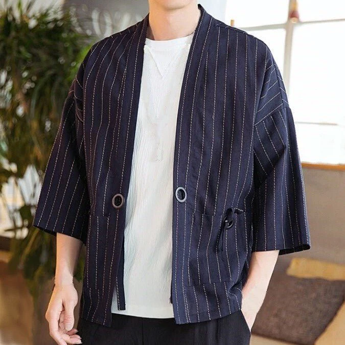 Si vous aimez la veste Kimono, vous allez surement adorer la Veste Japonaise Homme – Uni. La large gamme de veste kimono homme est parfaite si vous recherchez un look tout droit venu d’un style japonais. Accompagnez la veste Kimono d’un vêtement Japonais pour homme de votre choix !
