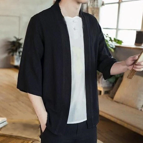 Si vous aimez la veste Kimono, vous allez surement adorer la Veste Kimono Longue. La large gamme de veste kimono homme est parfaite si vous recherchez un look tout droit venu d’un style japonais. Accompagnez la veste Kimono d’un vêtement Japonais pour homme de votre choix !