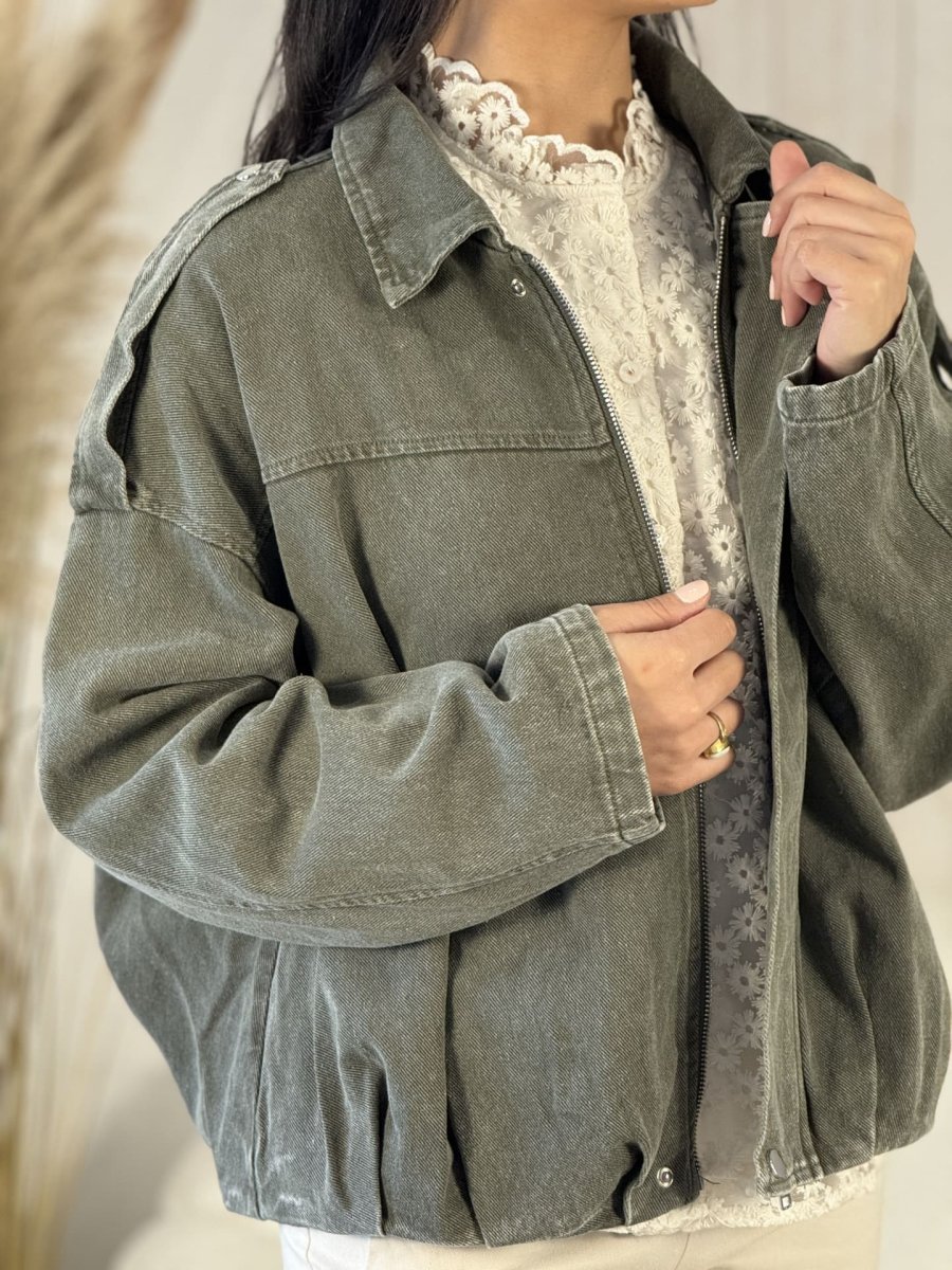 Blouson Boutonné Rivet Ami De Coeur en Nylon