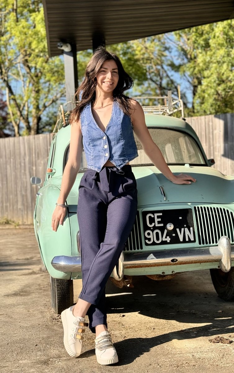 VESTE JEAN SANS MANCHES 3 BOUTONS Justine mesure 1m69 et porte la taille S. Taille : XS (34) / S (36) / M (38) / L (40) / XL (42) / 2XL (44) Composition & entretien : 97% COTON 3% ELASTHANNE Lavage à la main conseillé Besoin d’un conseil ? Consultez notre foire aux questions […]