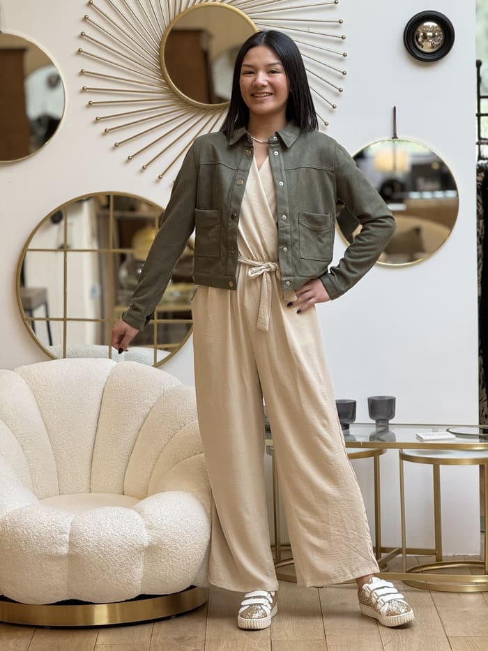 Veste à ml deux poches devant + boutons Mathilde mesure 1m65. Elle porte la taille S pour ce modèle. Taille : S (36) / M (38) / L (40) Composition & entretien : 90% POLYESTER 10% SPANDEX Lavage à la main conseillé Besoin d’un conseil ? Consultez notre foire aux questions ou contactez-nous via notre […]