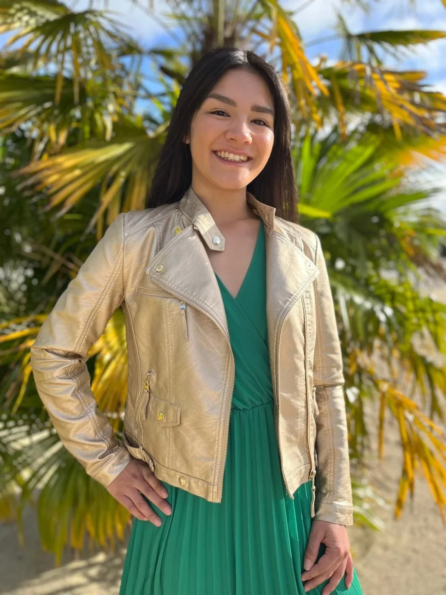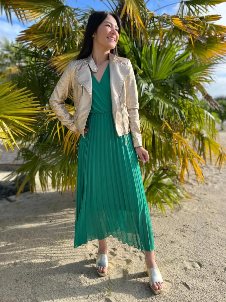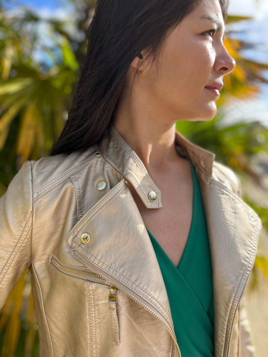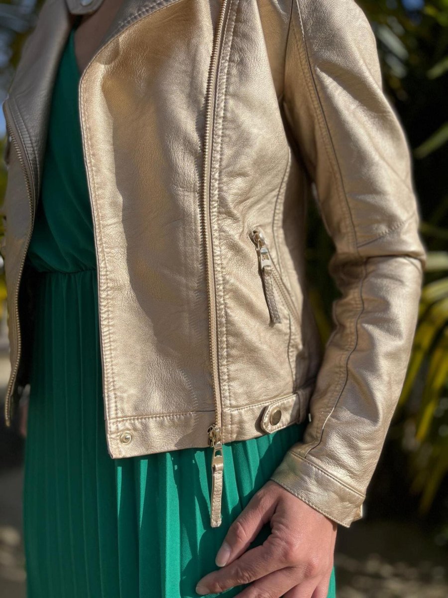 Veste doré Taille : Mathilde mesure 1m65 et Justine mesure 1m69. Elles portent la taille S pour ce modèle. Nous vous recommandons de porter votre taille habituelle. Taille : S (36) / M (38) / L (40) / XL (42) Composition & entretien : 60% POLYURETHANE 40% VISCOSE Lavage à la main conseillé Besoin d’un […]