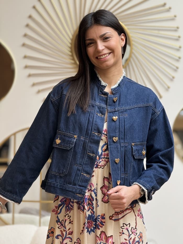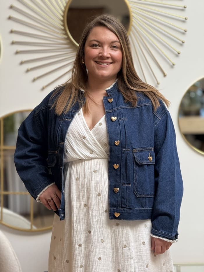 VESTE EN JEAN BOUTONS CŒUR POCHE DEVANT AVEC BOUTONS CŒUR Taille : Justine mesure 1m69. Elle porte la taille S/M pour ce modèle. Margaux mesure 1m55. Elle porte une taille 2XL (44) pour ce modèle. Taille : XS (34) – S (36) – M (38) – L (40) – XL (42) – 2XL (44) Composition […]