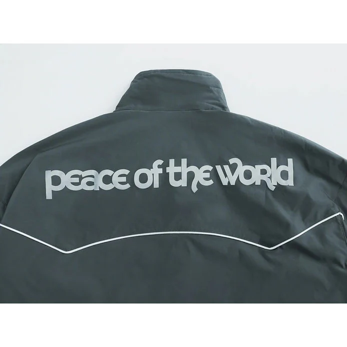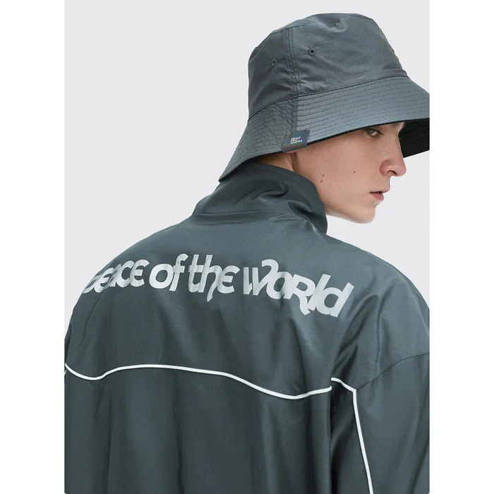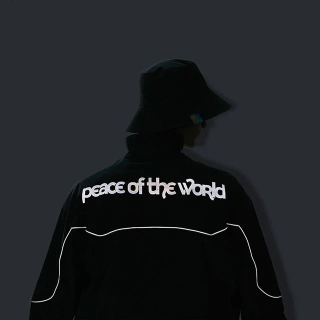 Le principal attrait de ce blouson, c’est qu’il est doté de parties réfléchissantes. En pleine jour, ce vêtement arbore une simple couleur verte, avec des lignes asymétriques qui le parcourent et les mots « Peace of the world » inscrits dans le dos. Une fois que la nuit tombe, ces ornements brillent clairement au-dessus du tissu qui devient sombre. De quoi attirer l’attention !