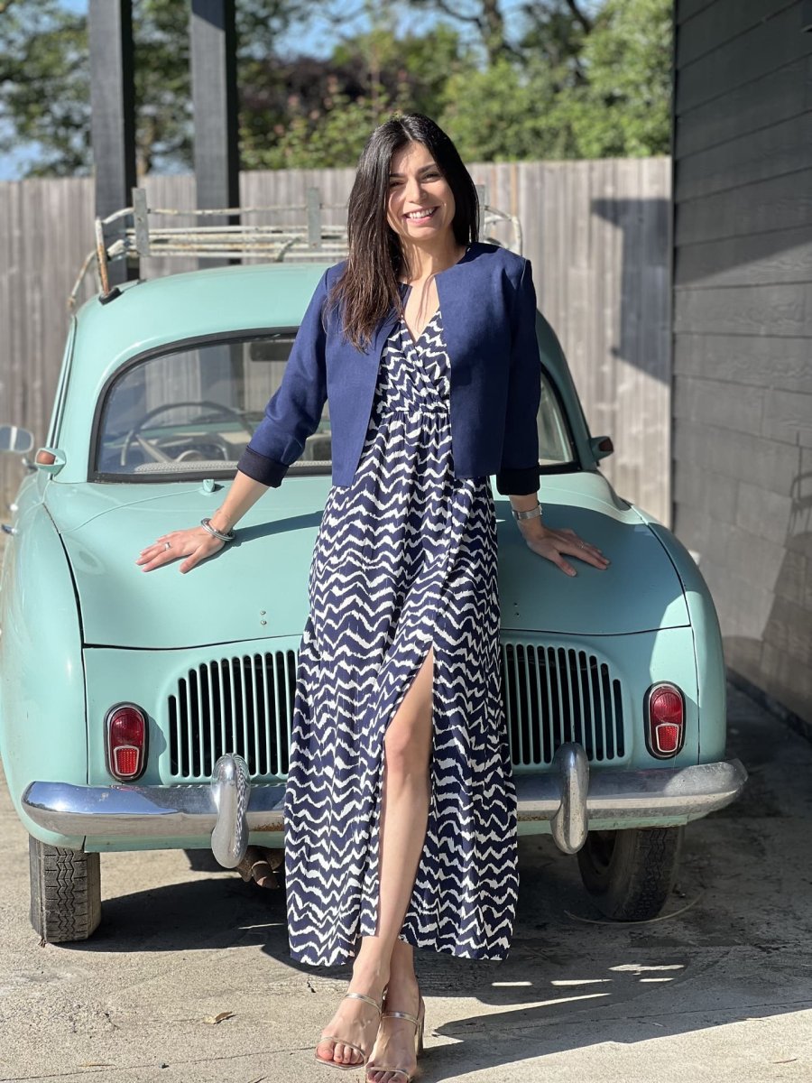 Justine mesure 1m69, Juliette mesure 1m63 et Mathilde mesure 1m65. Elle porte la taille M pour ce modèle.