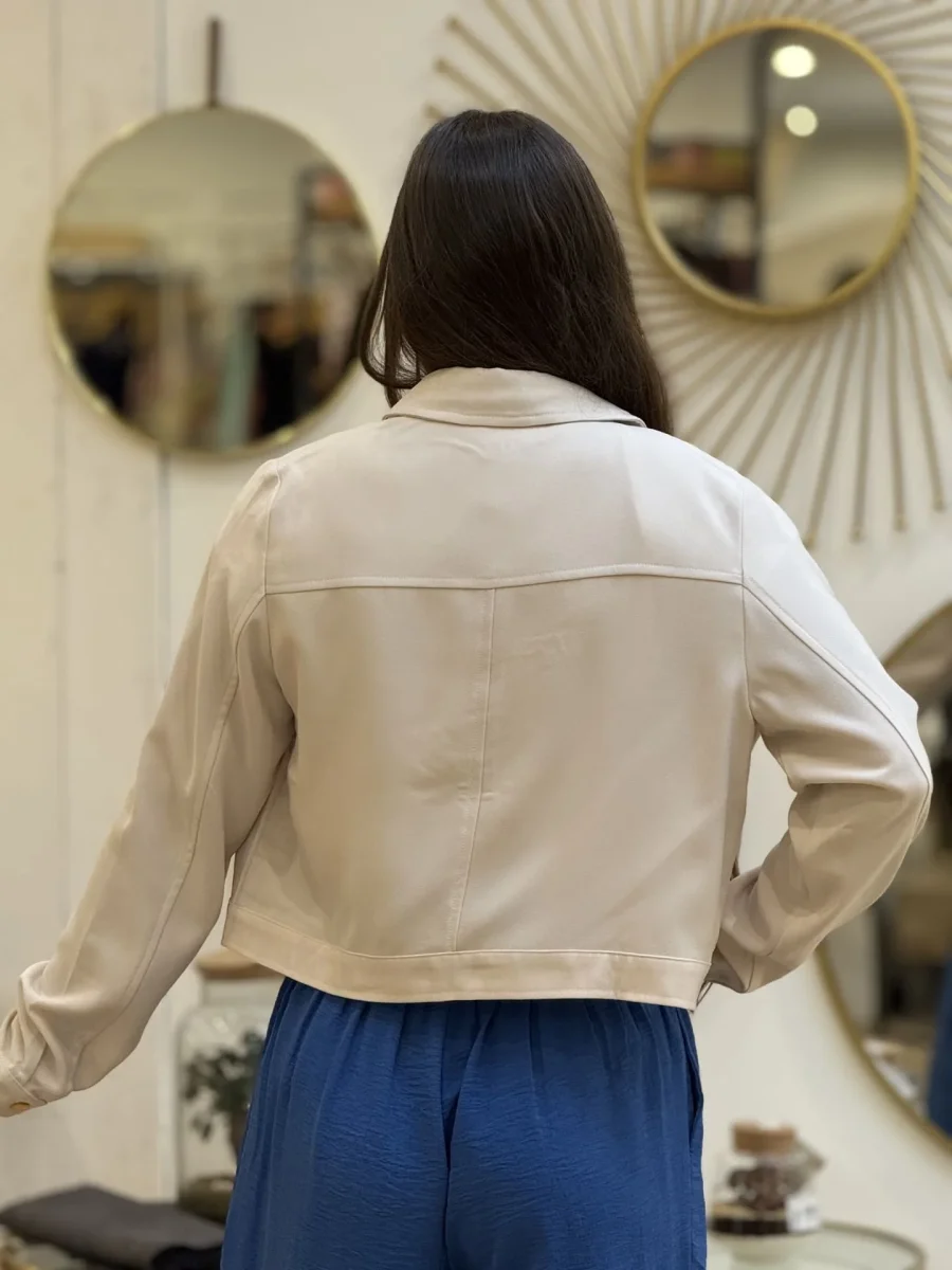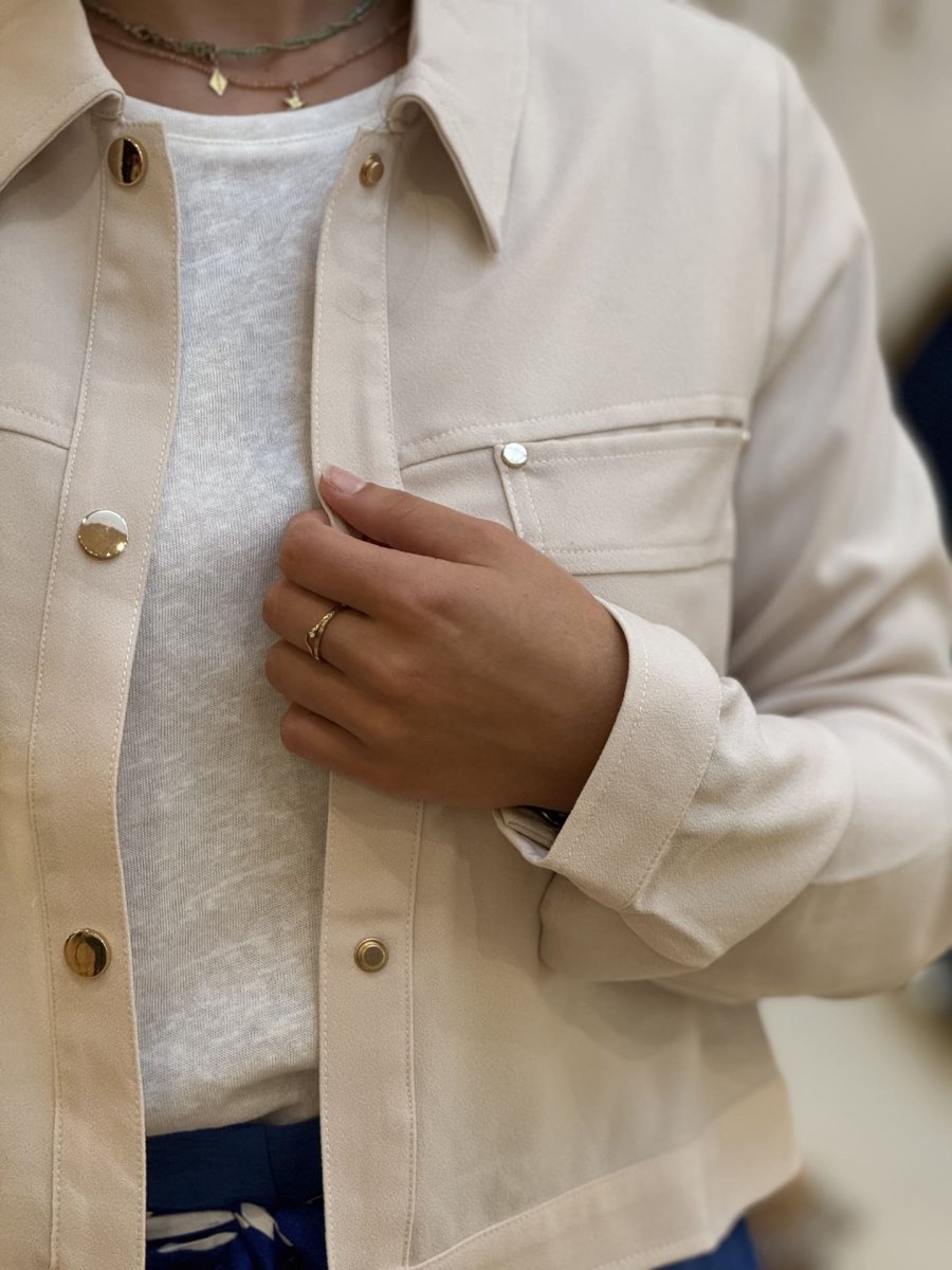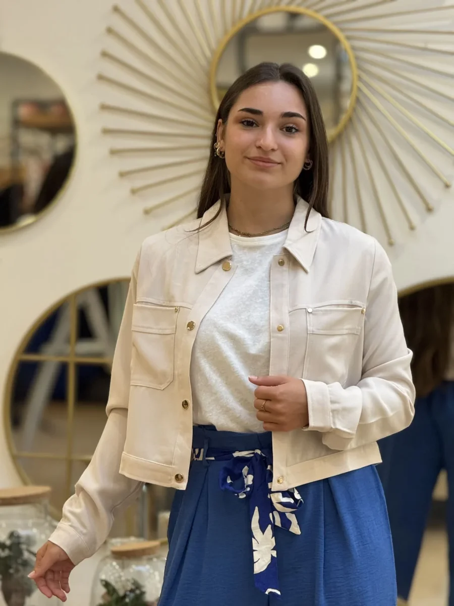 - Veste courte à ml – boutons dorés – 2 poches plate niveau poitrine