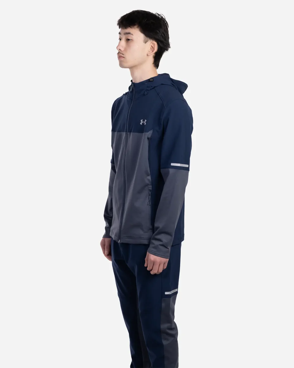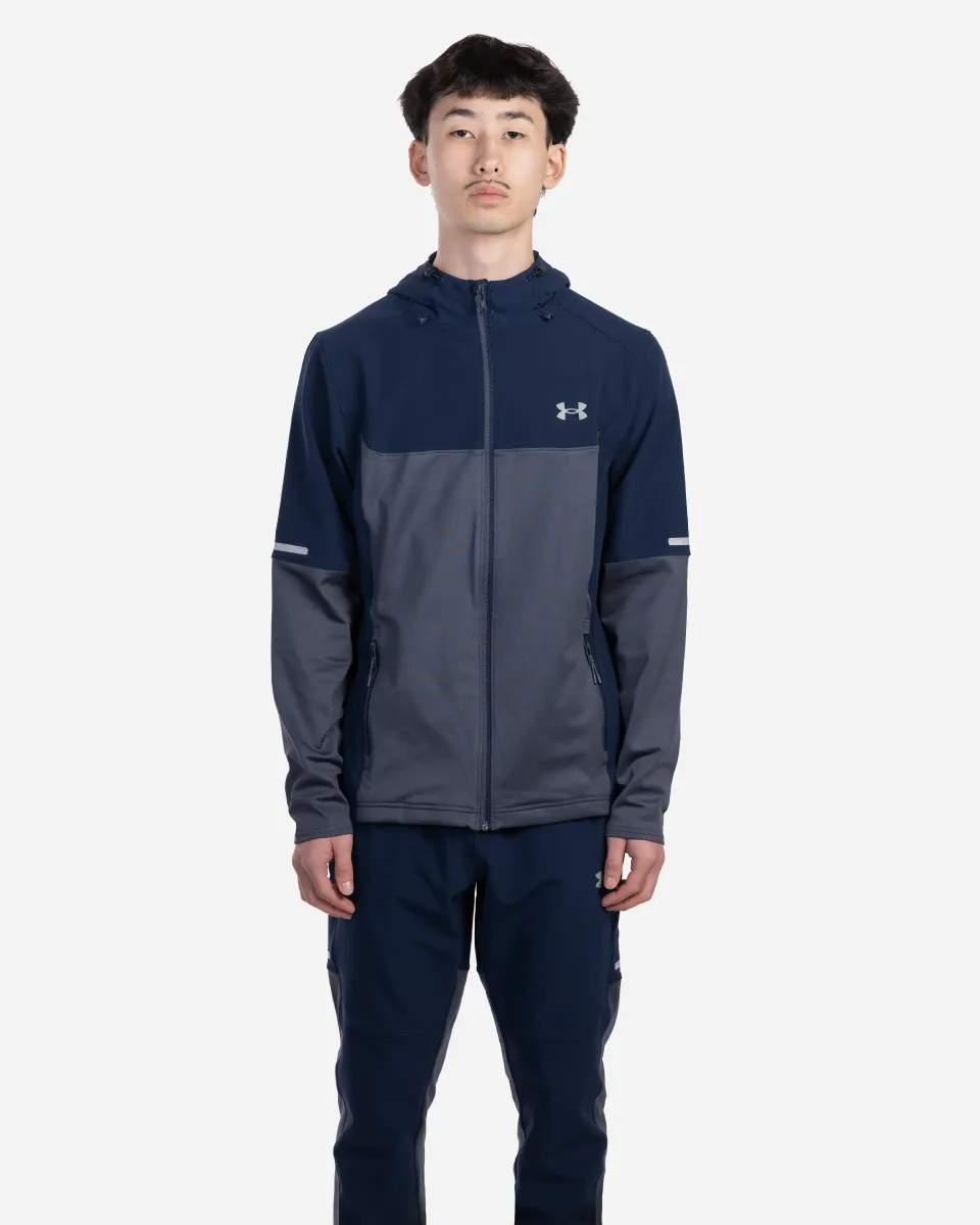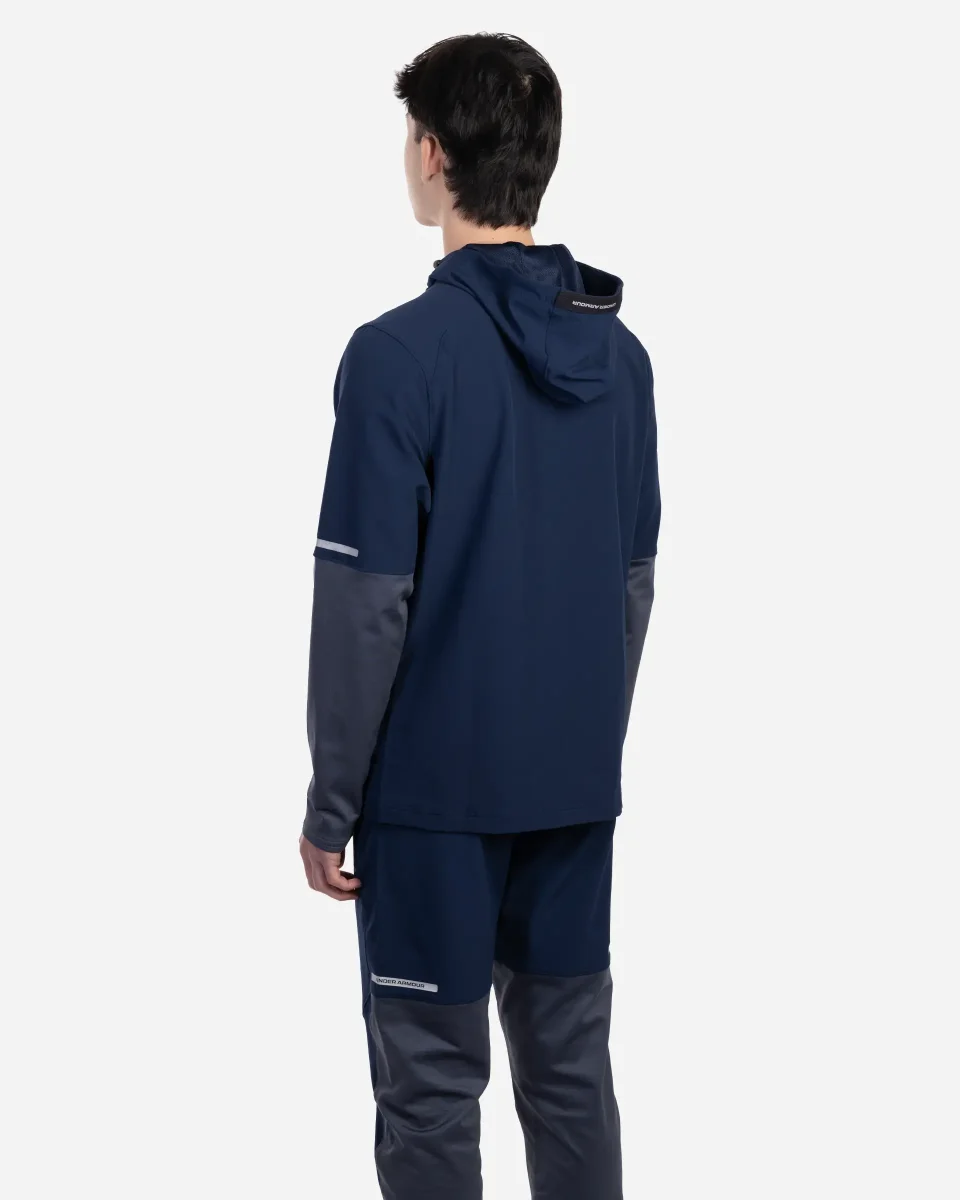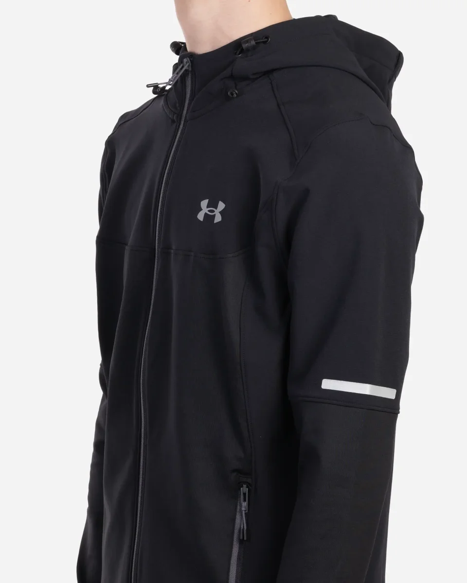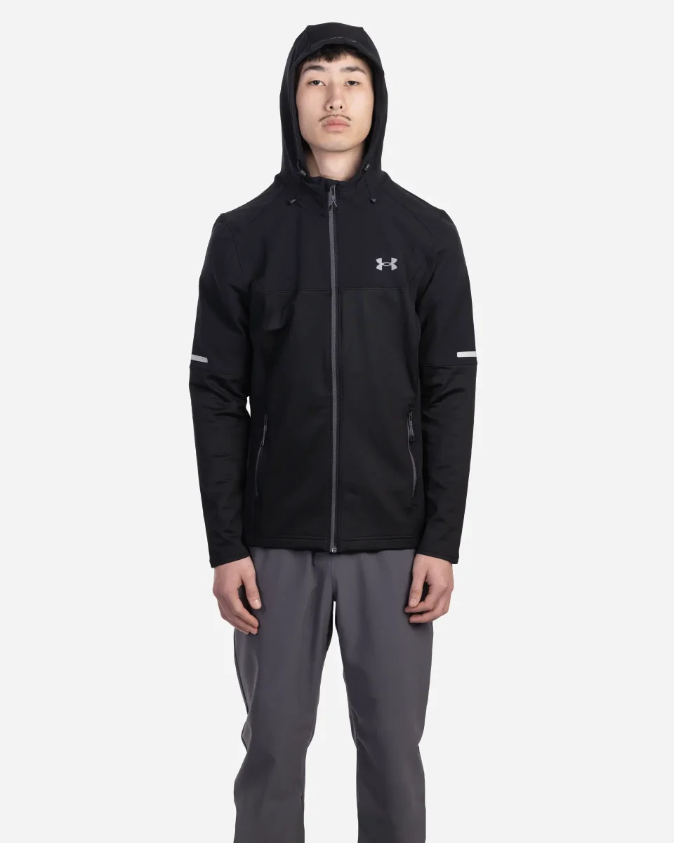 Veste de la marque Under Armour conçue pour les entraînements par temps froid. Tissu tissé léger et ultra-résistant avec empiècements en maille ColdGear® à double épaisseur placés stratégiquement pour plus de chaleur. L’intérieur brossé ultra-chaud et l’extérieur lisse qui sèche rapidement assurent un confort optimal. Matière extensible dans toutes les directions qui sèche très rapidement. Capuche avec cordon réglable. Poches pour les mains zippées et sécurisées. Détails réfléchissants.