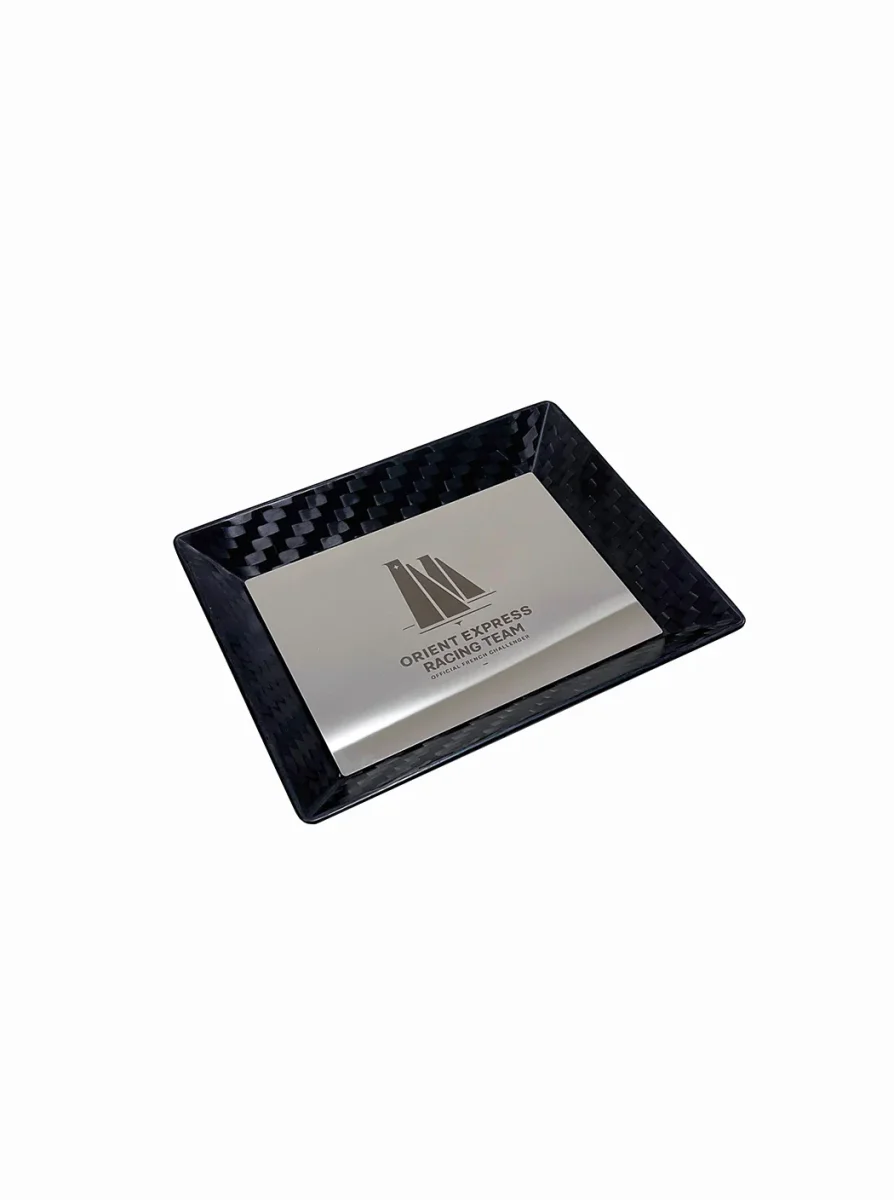Réalisé en carbone recyclé issu de chutes de construction de l’AC75 ORIENT EXPRESS RACING TEAM, ce vide-poches met à l’épreuve les fibres de carbone avec ces formes anguleuses. Sa forme rectangulaire met en avant l’aspect des fibres tressées.